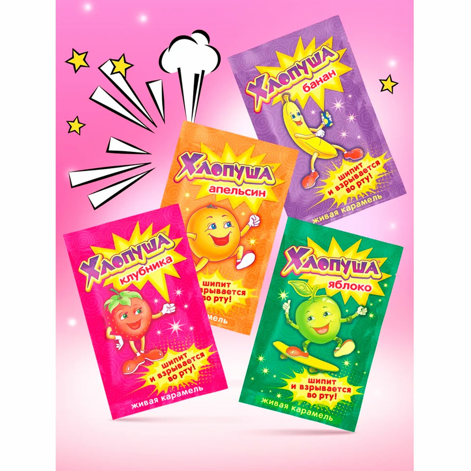 Леденцы-хлопушки "ХЛОПУША" – это оригинальное и необычное лакомство, которое порадует сладкоежек и маленьких исследователей. Как только карамель касается языка, она начинает весело хлопать и шипеть.