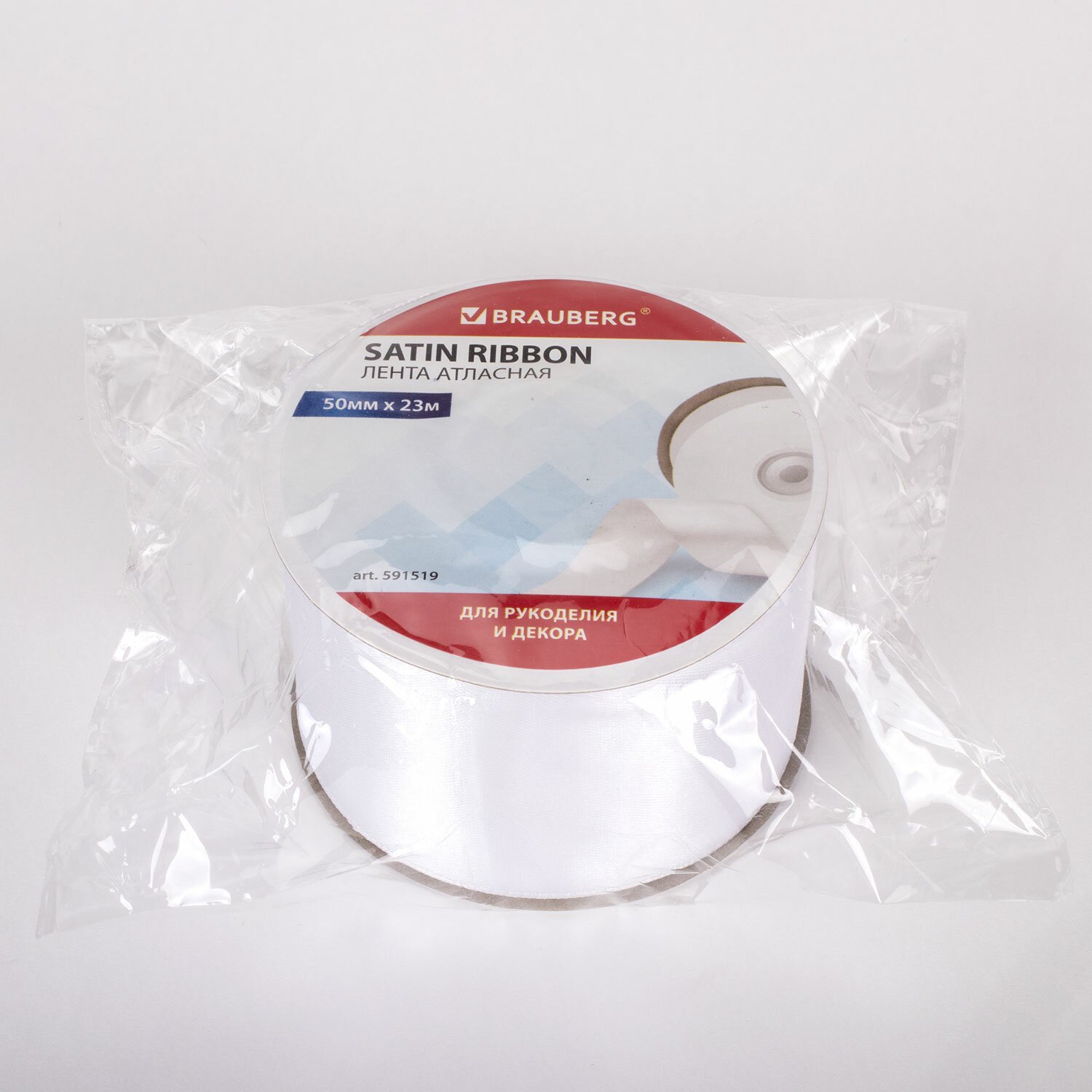 Лента атласная ширина 50 мм, длина 23 м, белая, BRAUBERG, 591519