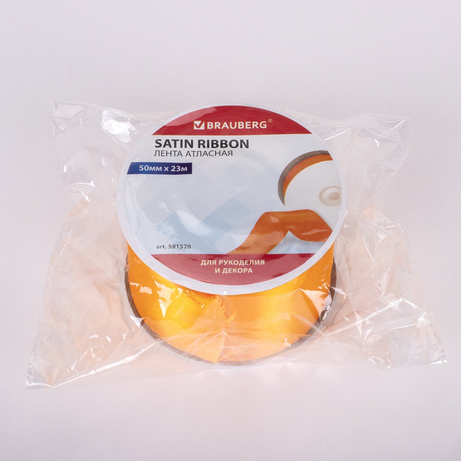 Лента атласная ширина 50 мм, длина 23 м, оранжевая, BRAUBERG, 591526
