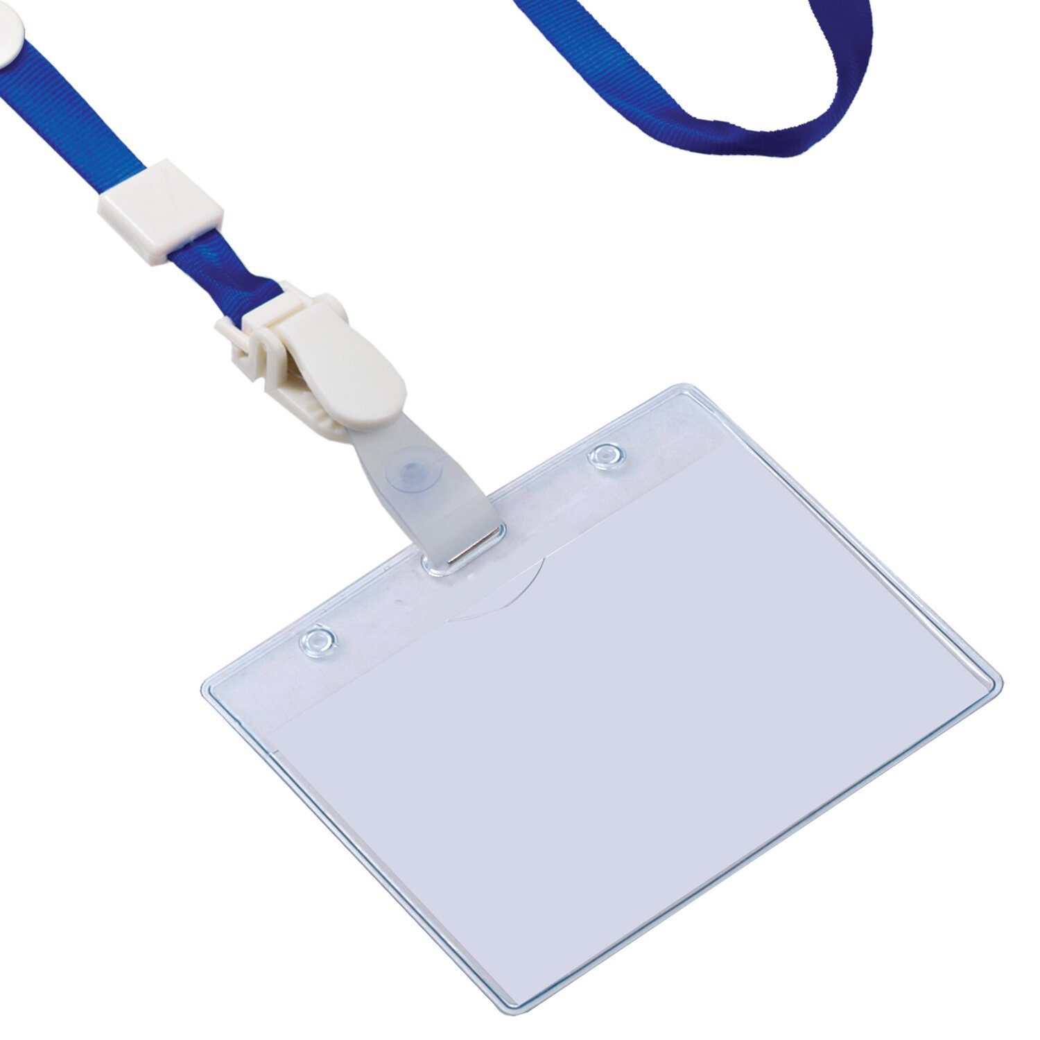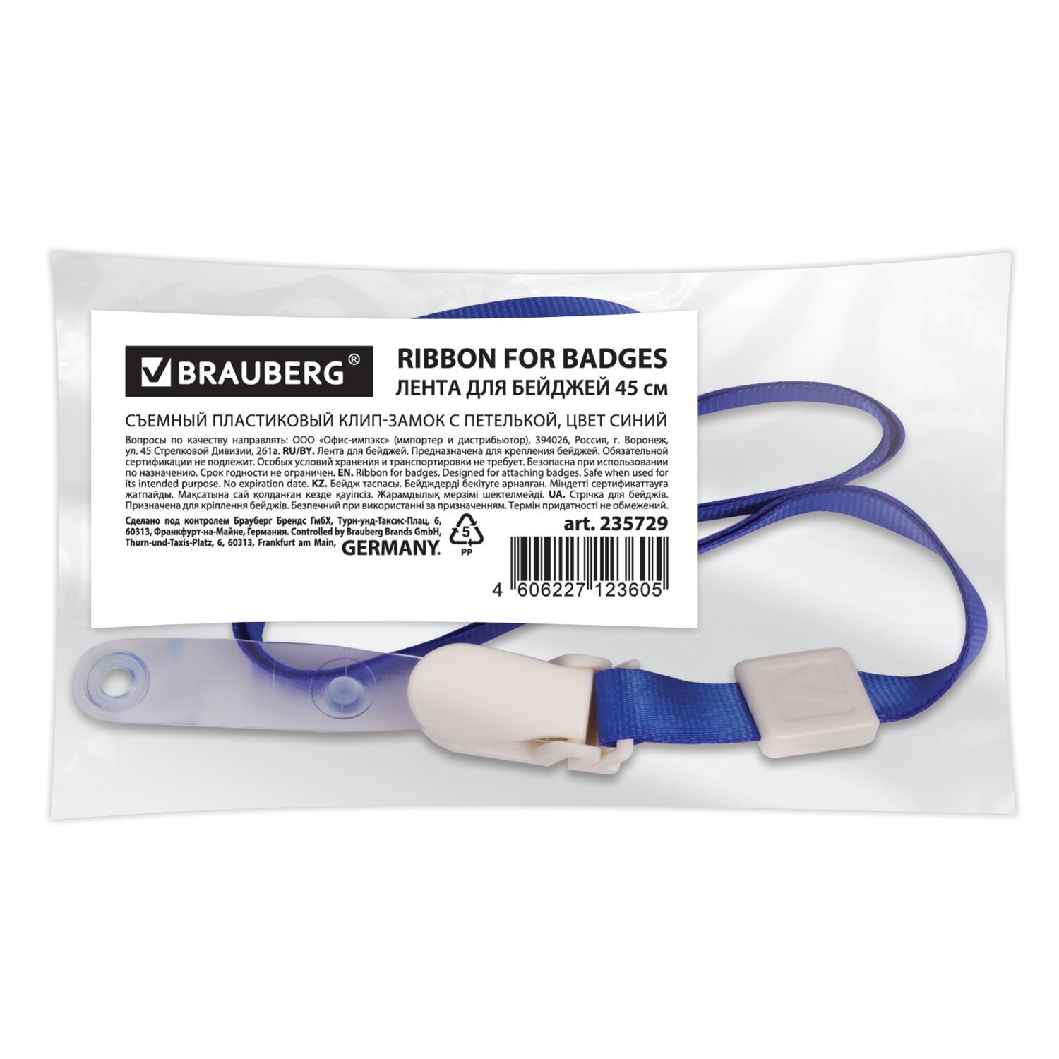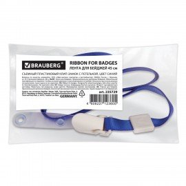 Лента для бейджей, 45 см, съемный пластиковый клип-замок с петелькой, СИНЯЯ, BRAUBERG, 235729