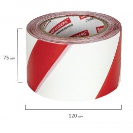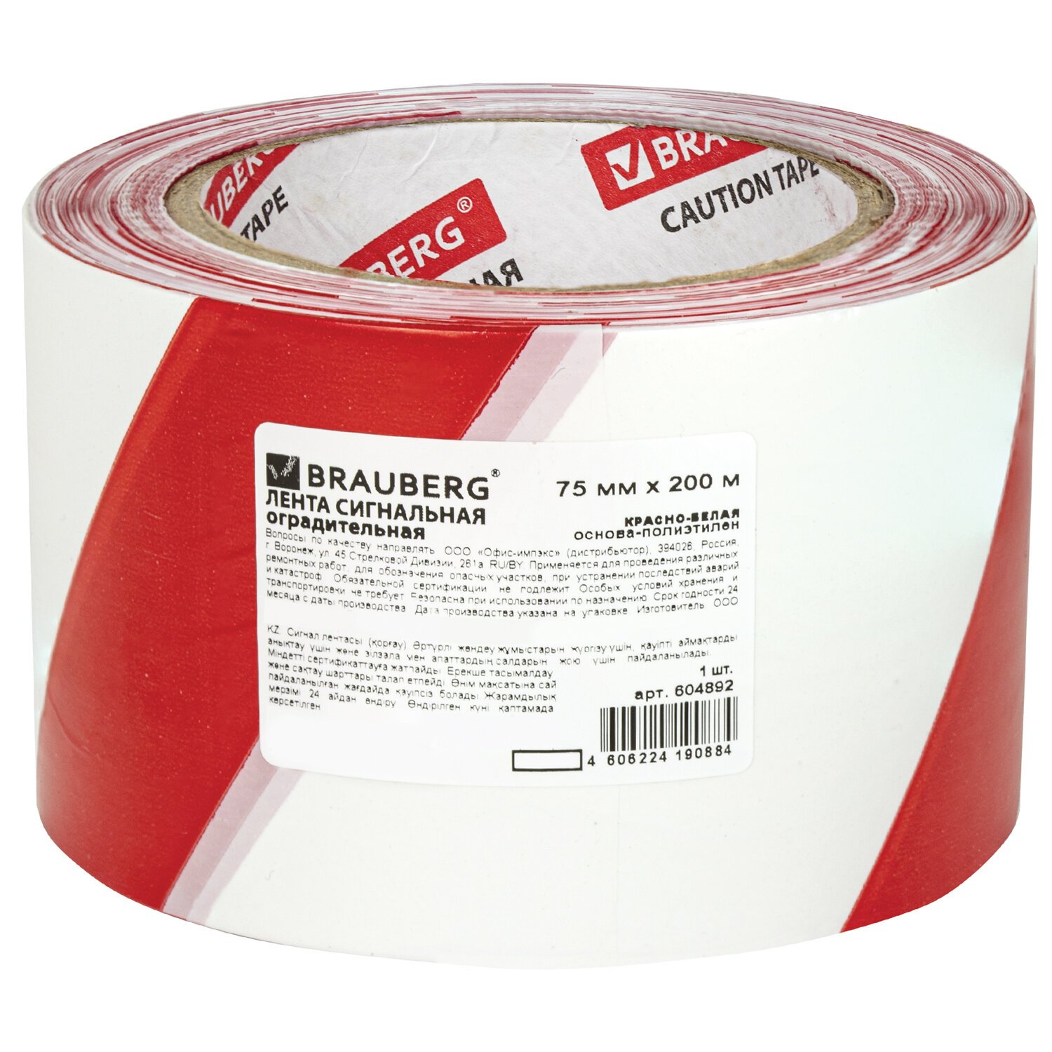 Лента оградительная сигнальная красно-белая, 75 мм х 200 м, BRAUBERG "Грандмастер", полиэтилен, 604892