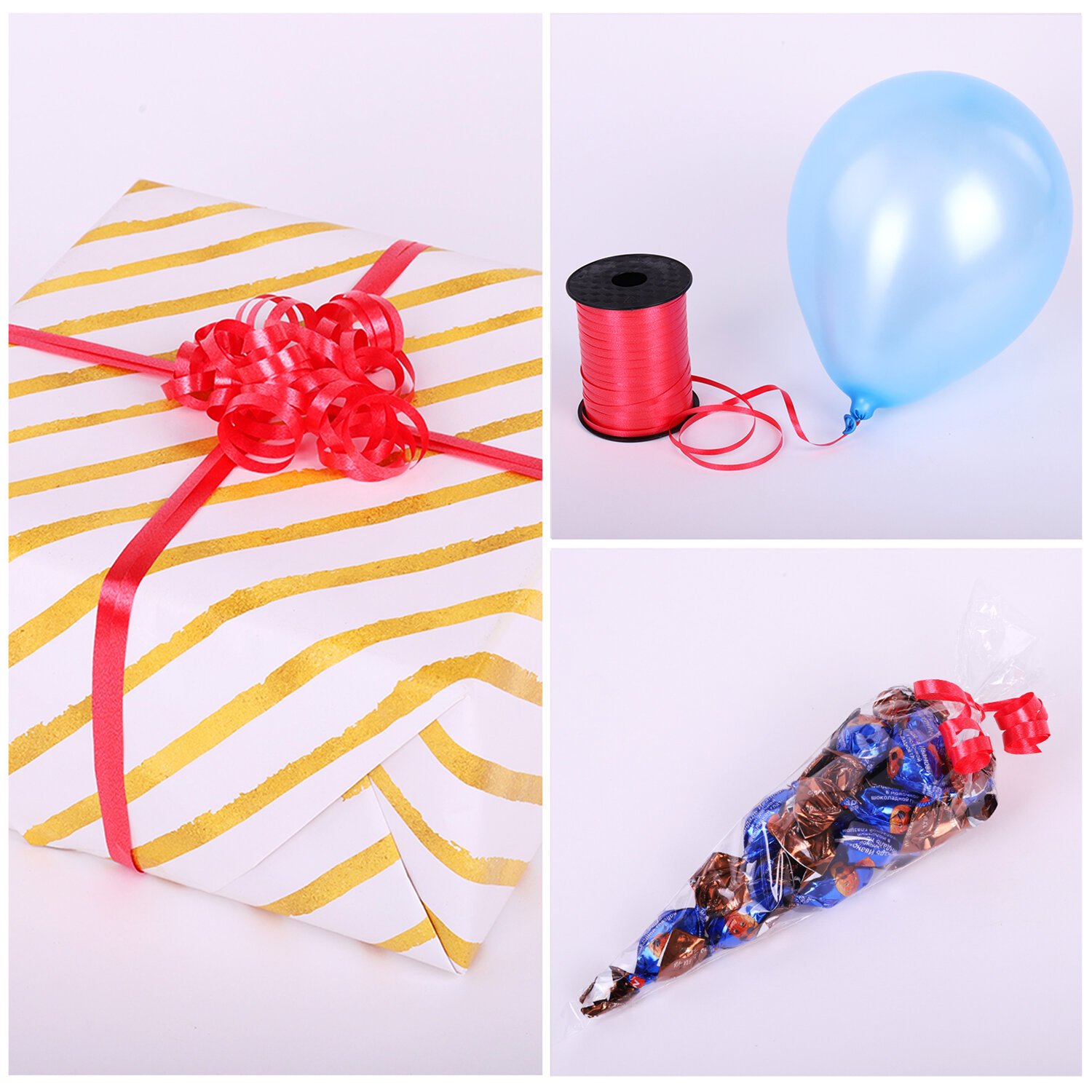 Лента упаковочная декоративная для шаров и подарков, 5 мм х 500 м, красная, ЗОЛОТАЯ СКАЗКА, 591811