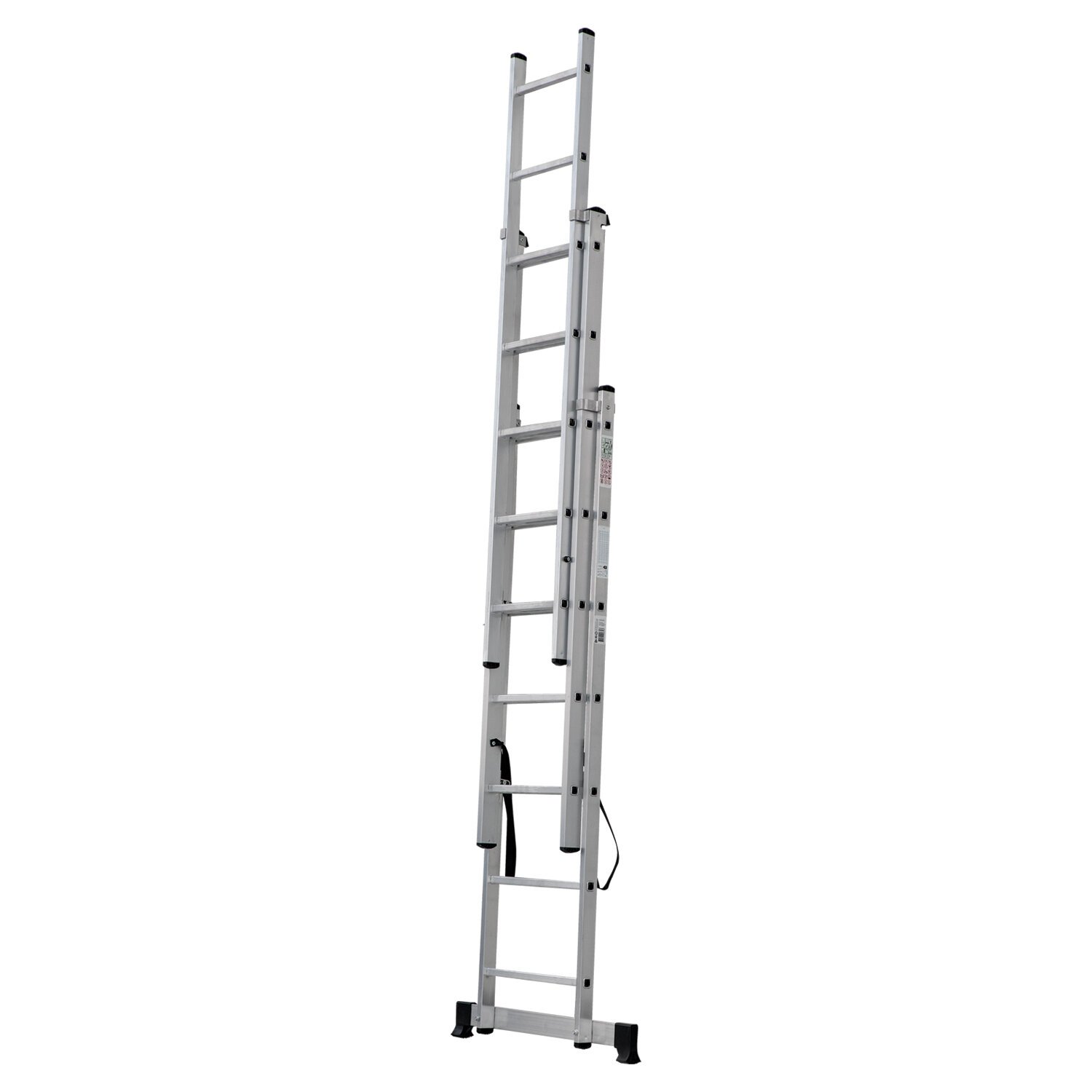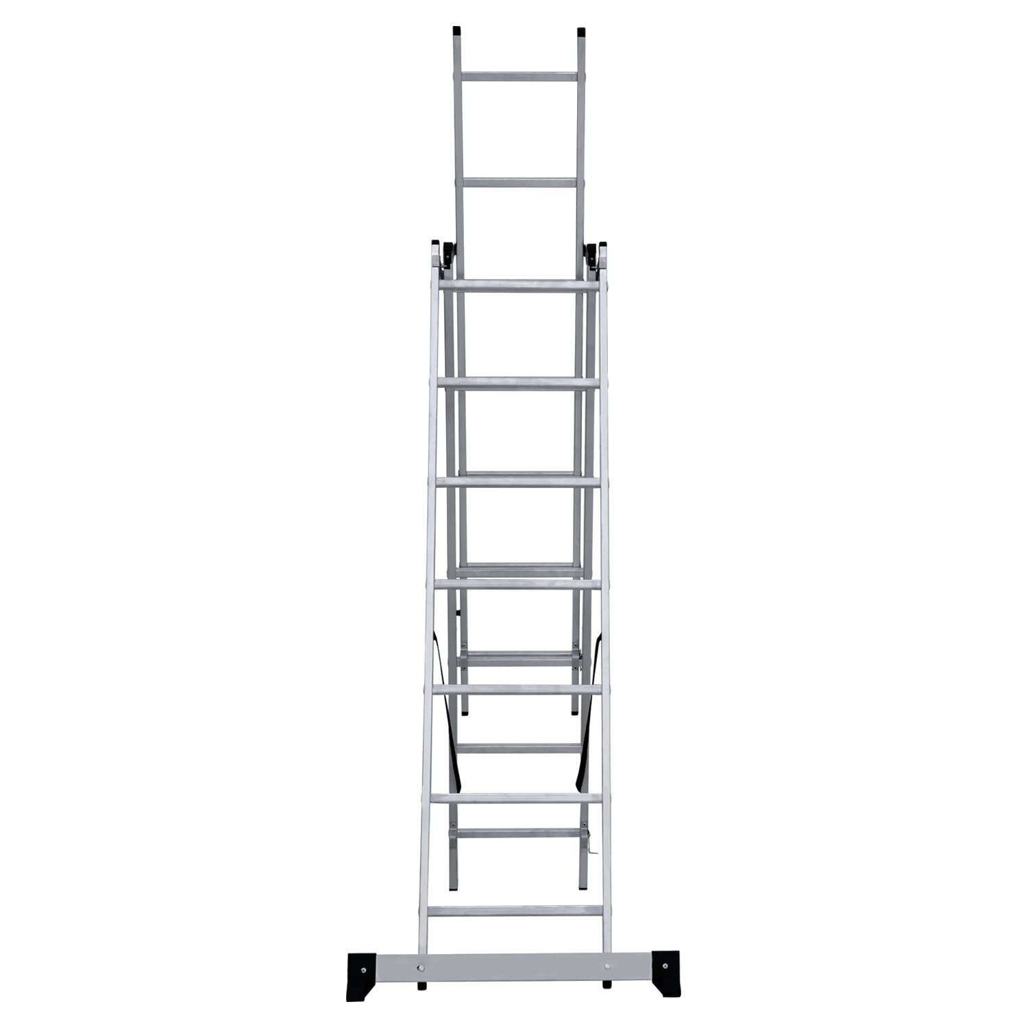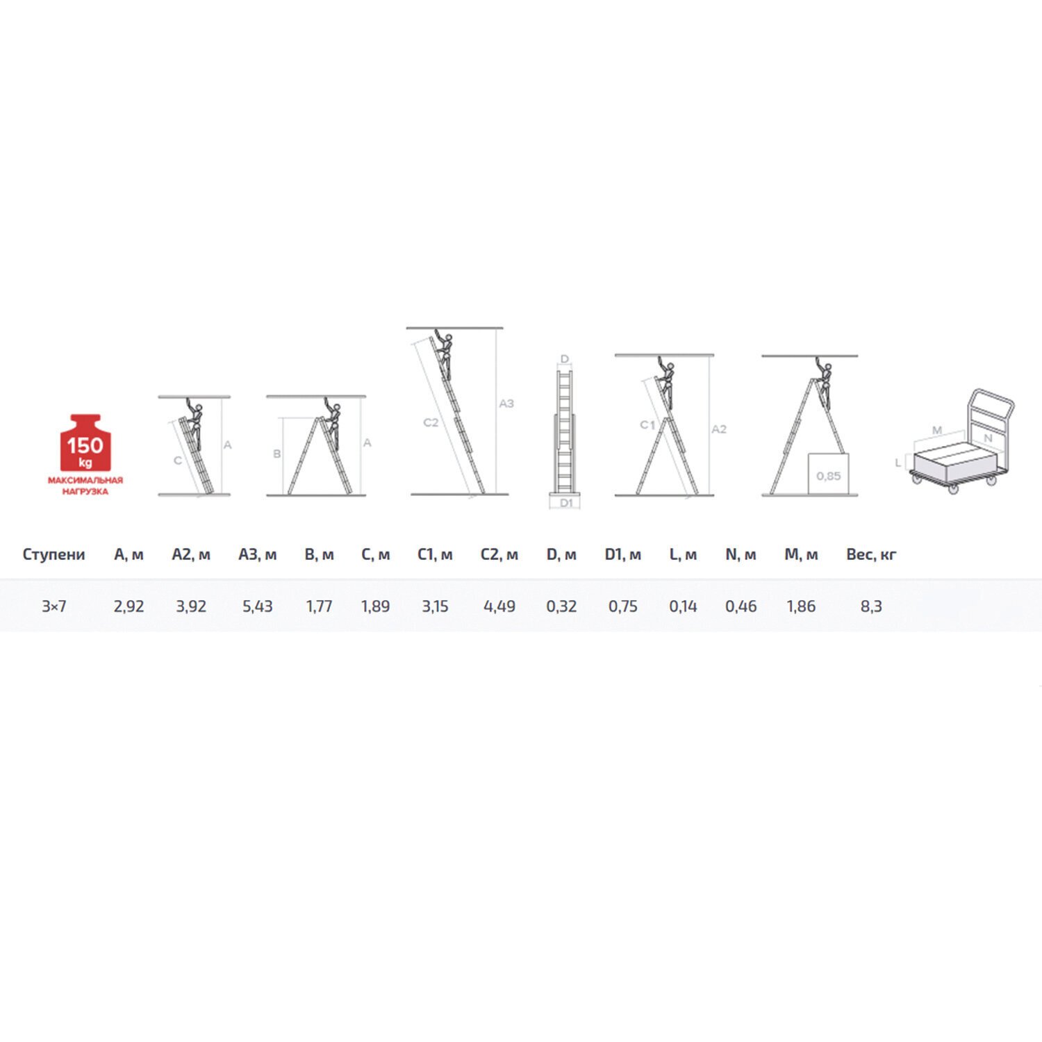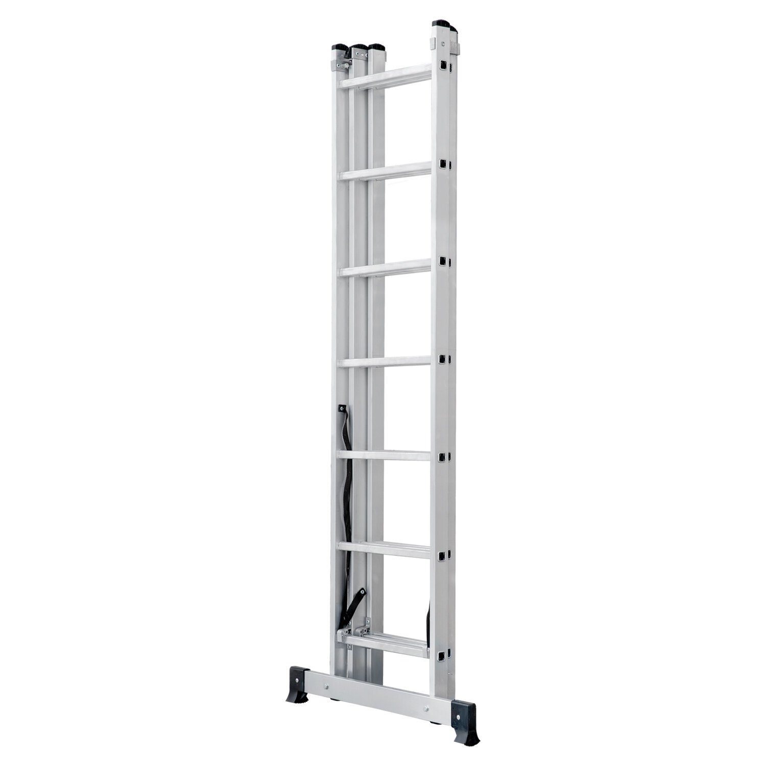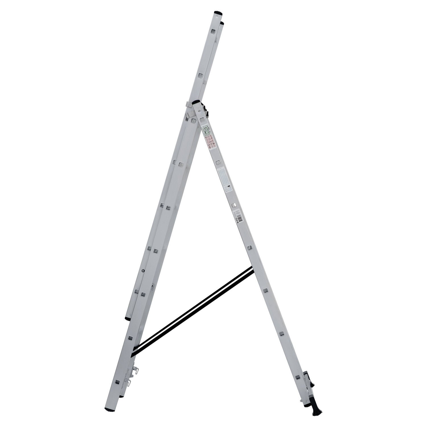 Лестница-трансформер 3-х секционная 3х7 ступеней, высота 4,5 м (3 секции по 1,9 м), нагрузка 150 кг, алюминий, НОВАЯ ВЫСОТА, 1230307