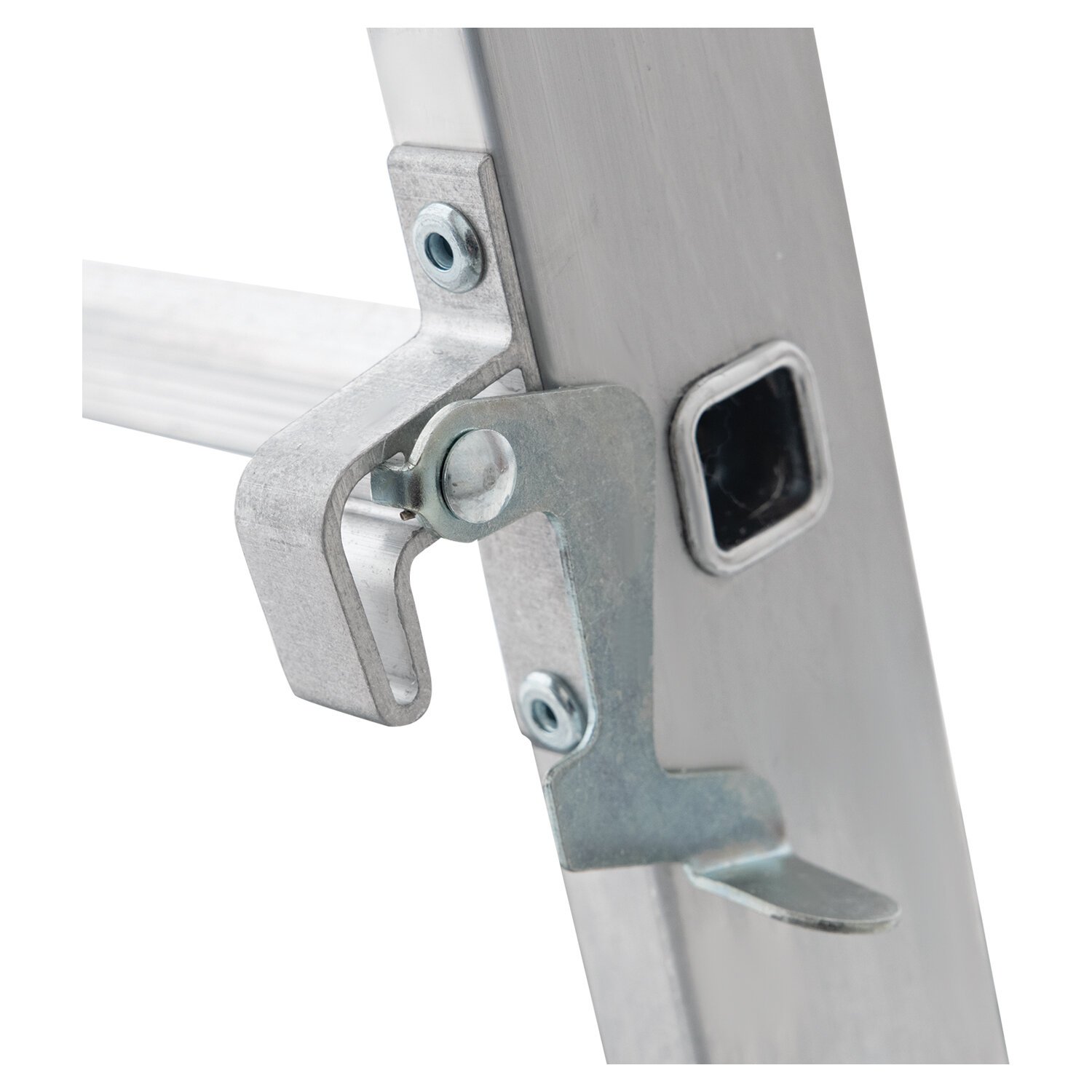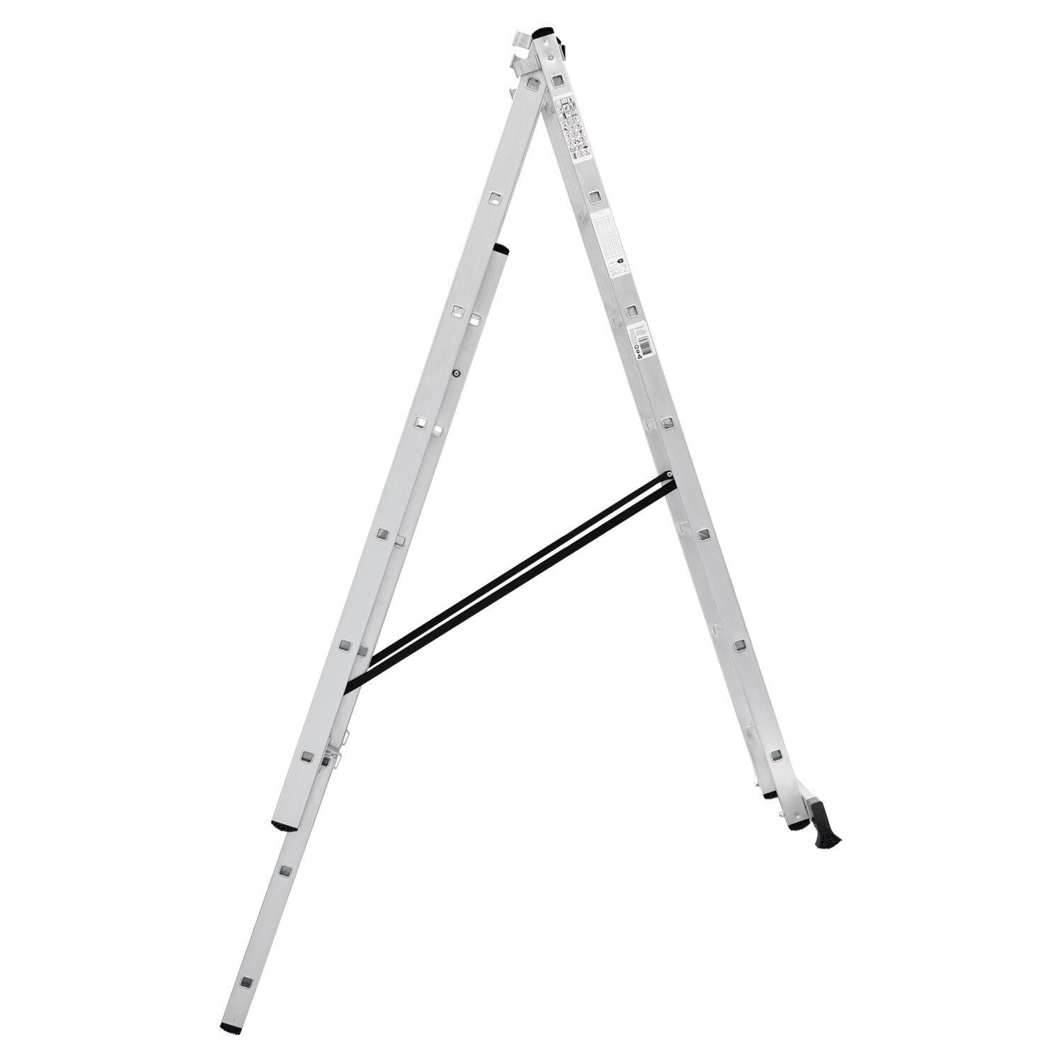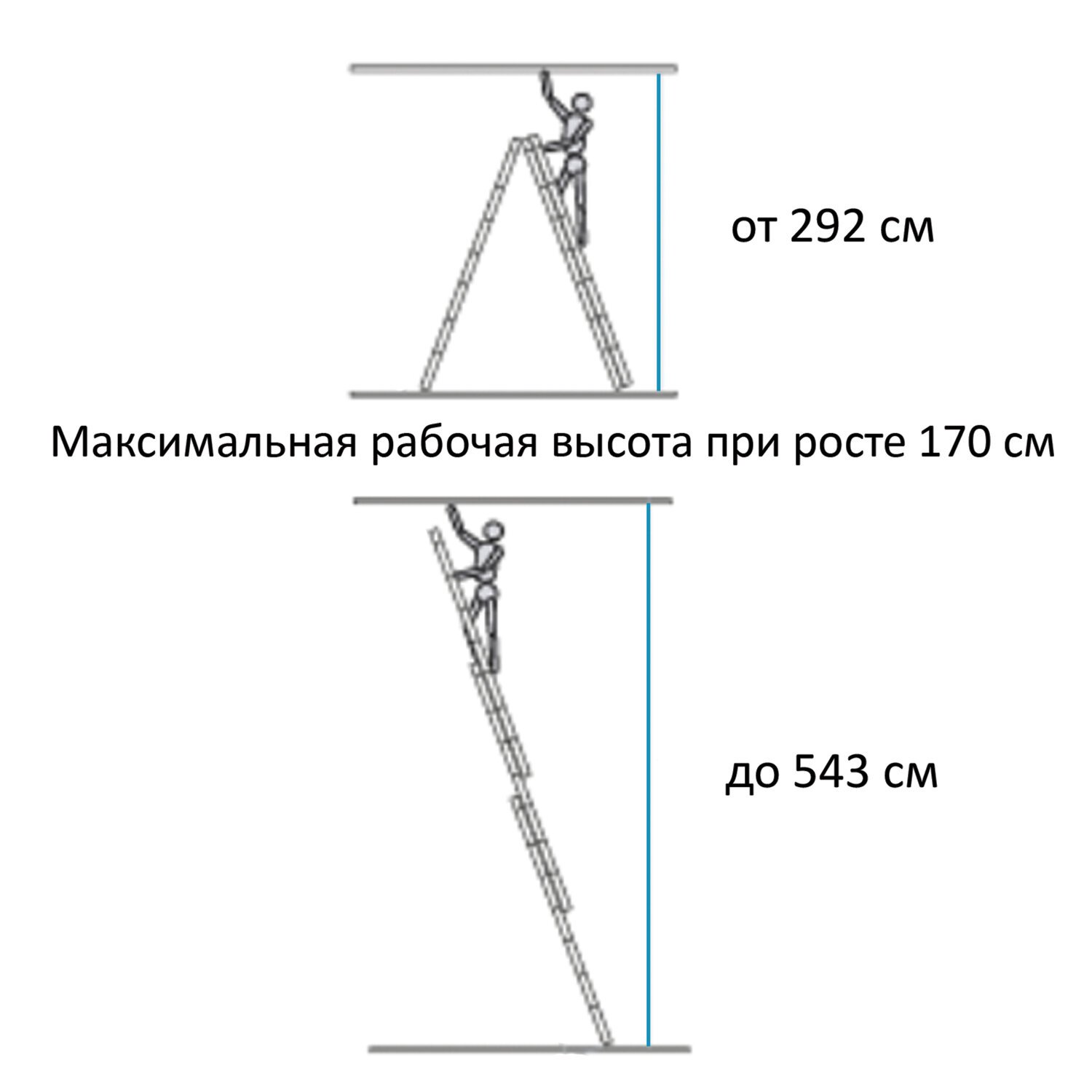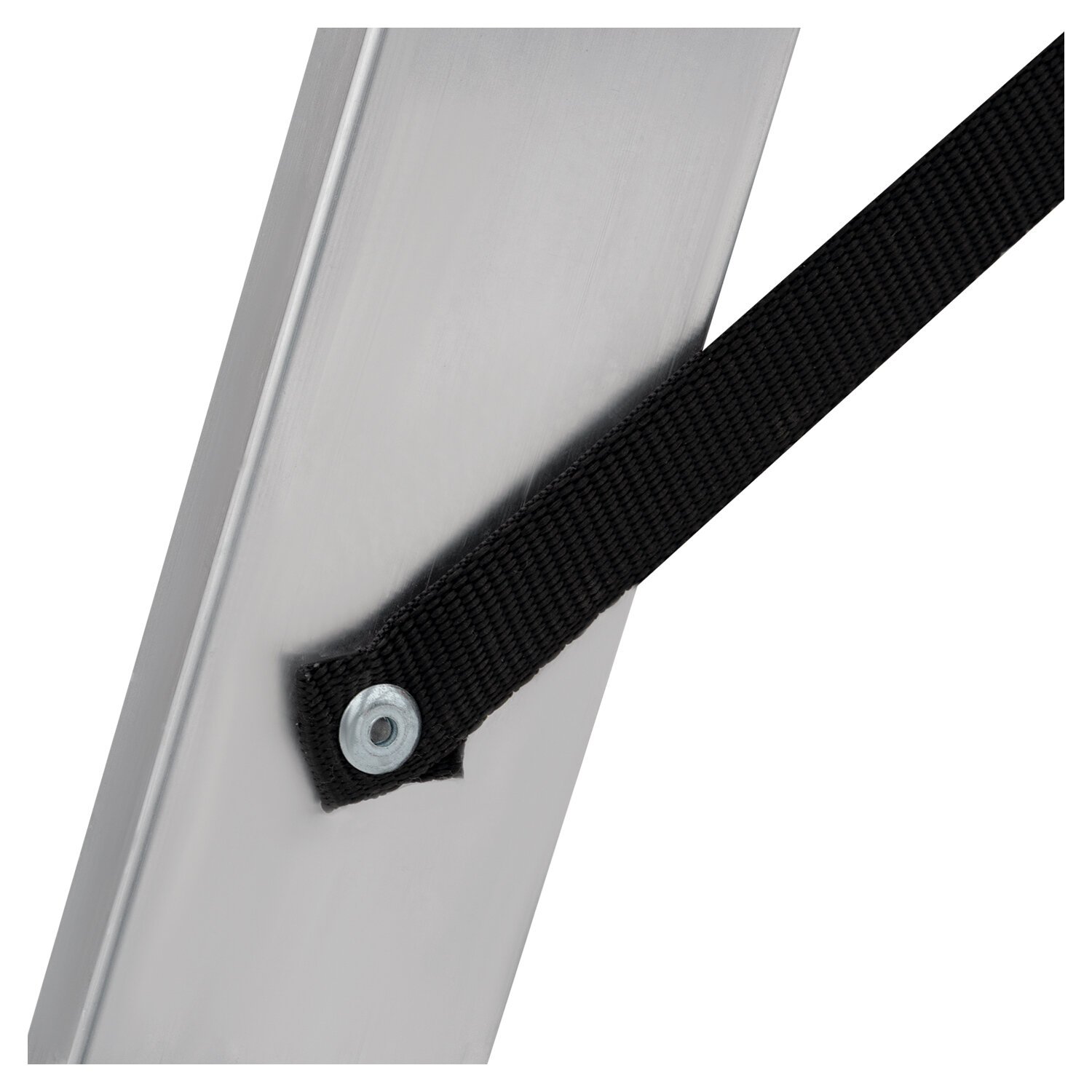 Широкая поперечная траверса обеспечивает высокую устойчивость, а надёжно закреплённые на стойках и траверсе пластиковые наконечники препятствуют скольжению. Верхняя секция легко вынимается и устанавливается и может служить отдельной приставной лестницей.