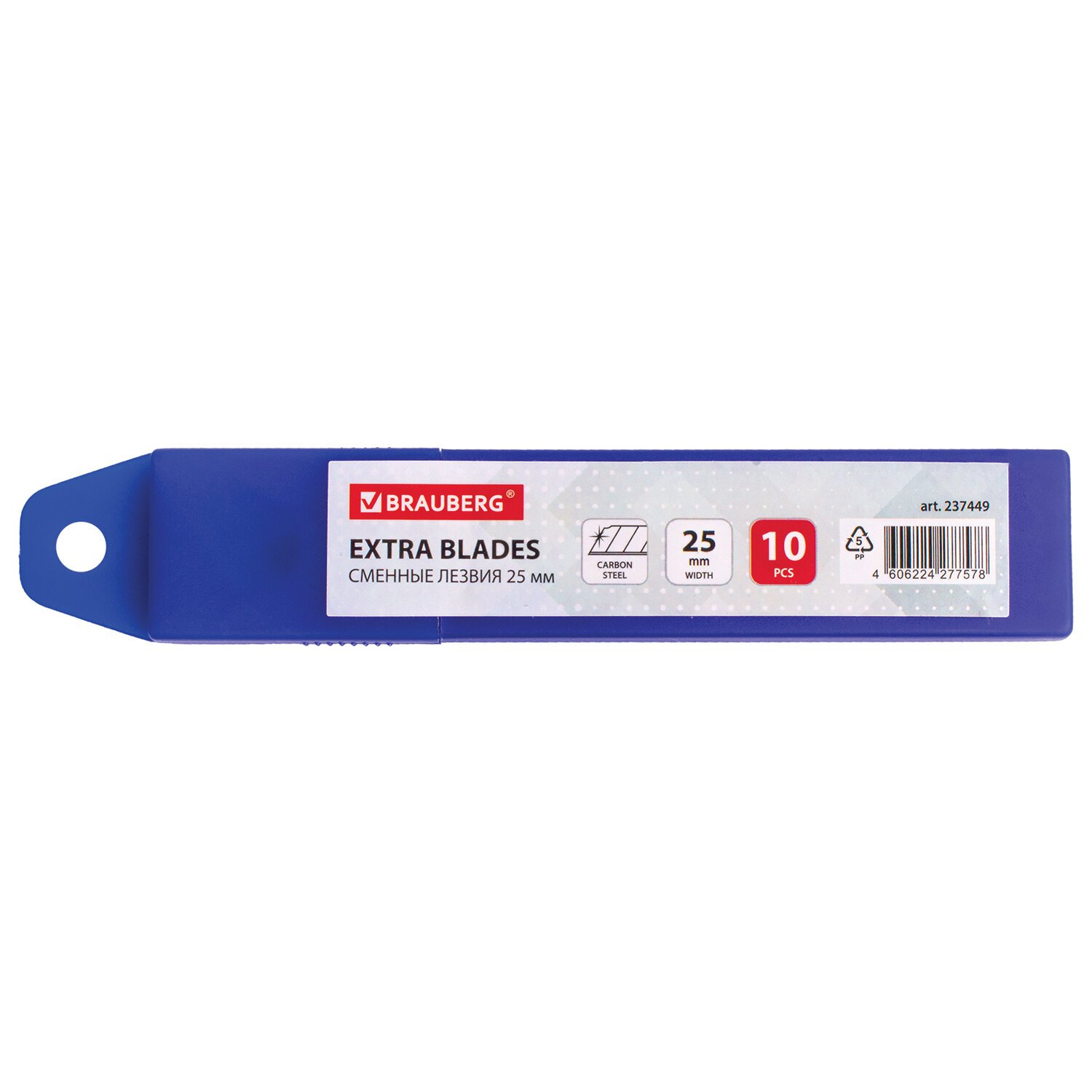 Лезвия для ножей ширина 25 мм BRAUBERG, КОМПЛЕКТ 10 шт., в пластиковом пенале, 237449