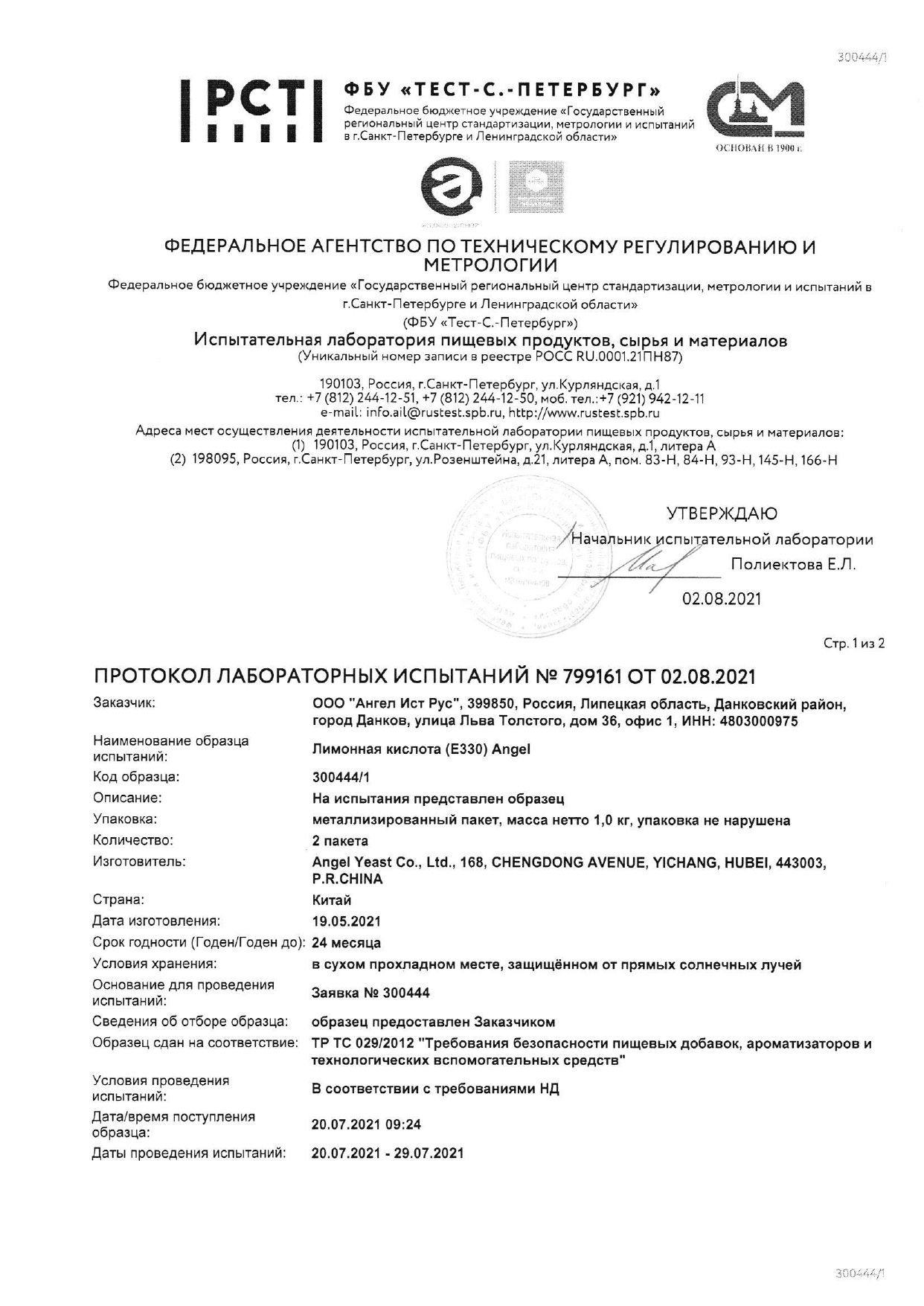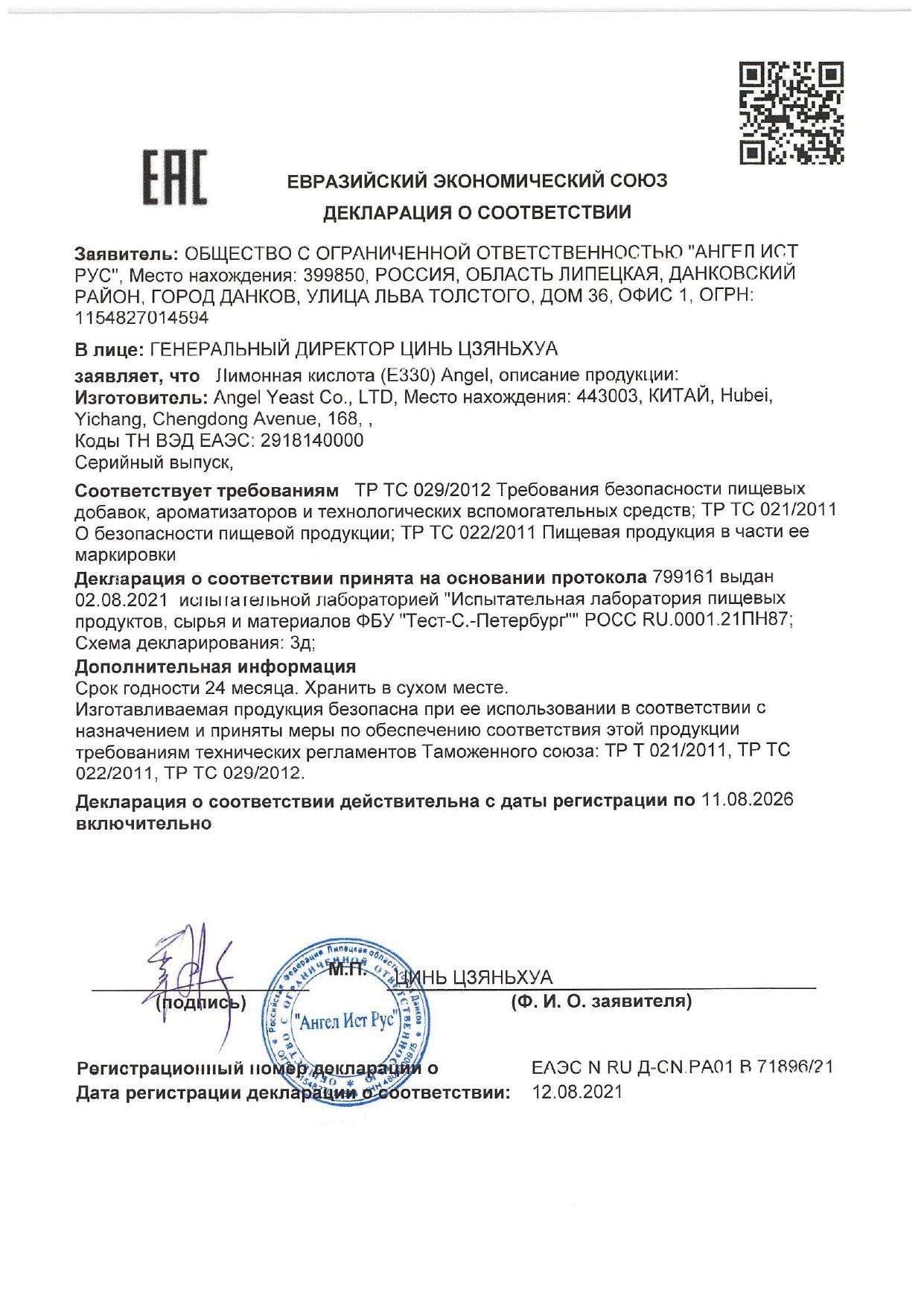 | Тип товара | лимонная кислота |