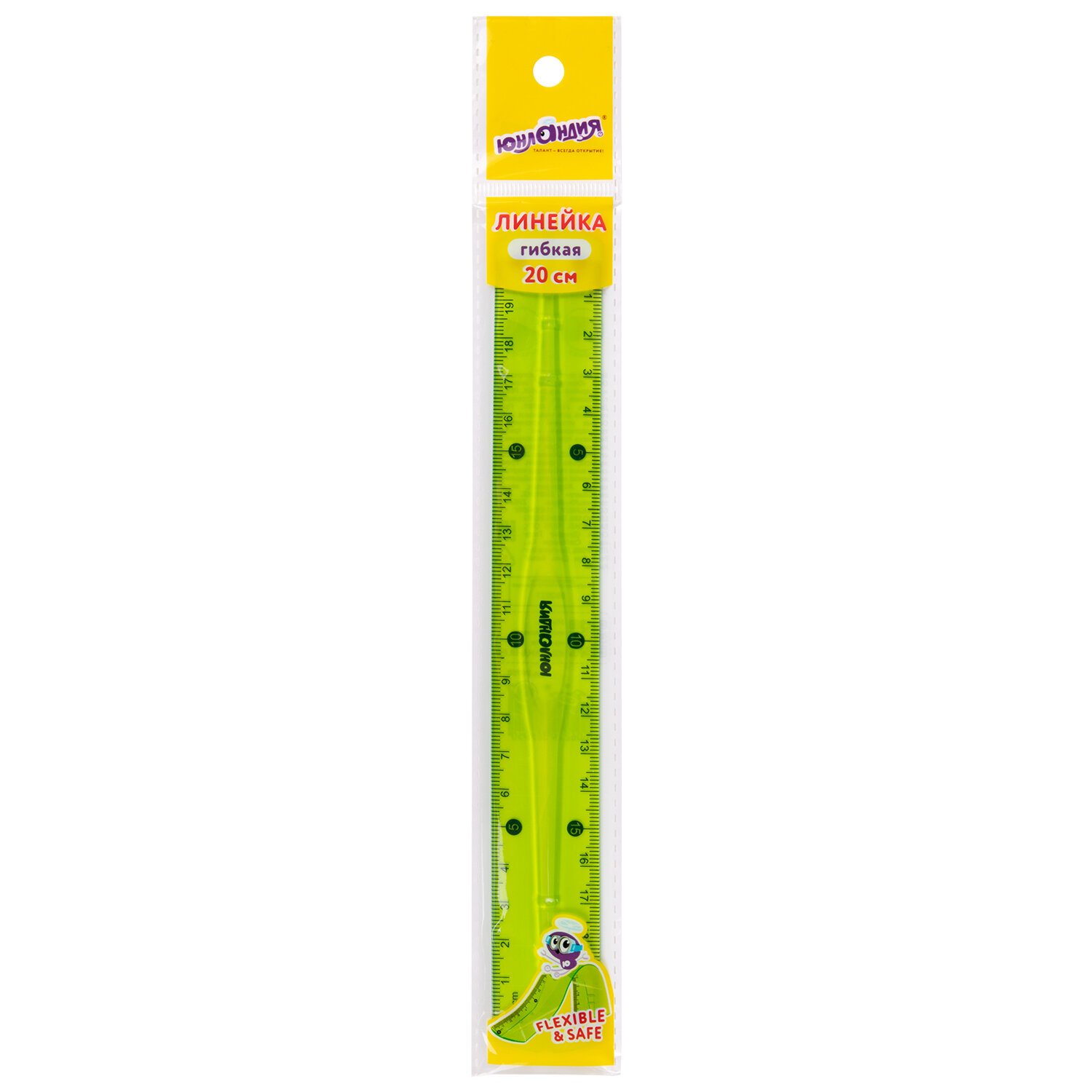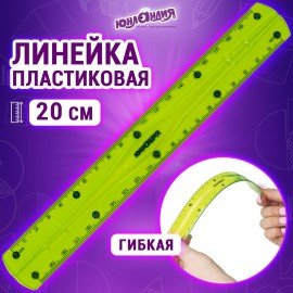 Линейка 20 см гибкая ЮНЛАНДИЯ "FLEX", пластиковая, тонированная, зеленая, 210758