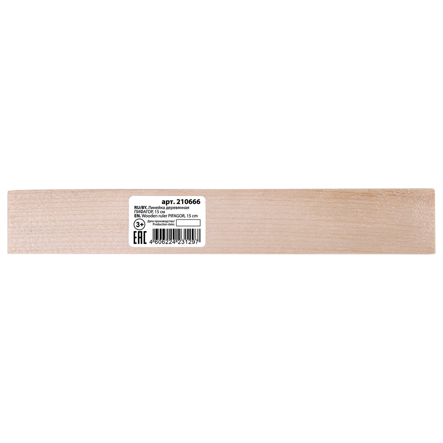 Линейка деревянная 15 см, ПИФАГОР, 210666