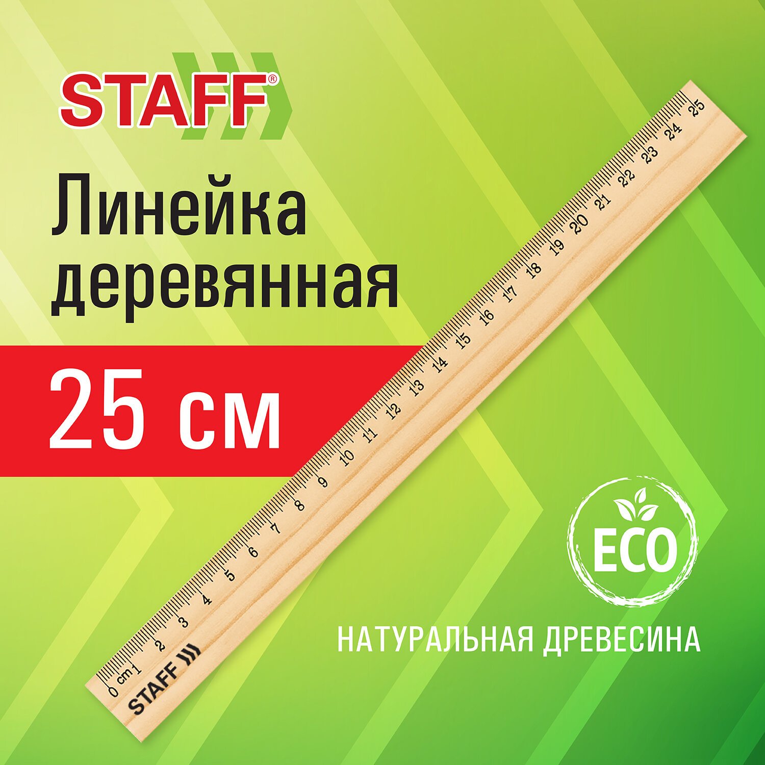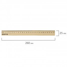 Линейка деревянная 25 см, STAFF, канадская сосна, 210799