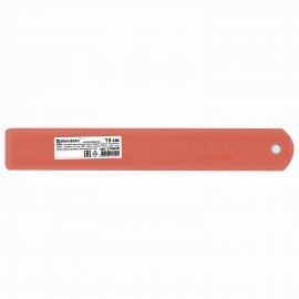 Линейка изготовлена из высококачественной пружинистой стали. Имеет безопасные закруглённые углы и четкую контрастную миллиметровую шкалу. Длина шкалы составляет 15 см. Упакована в ПВХ-чехол с подвесом.