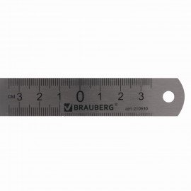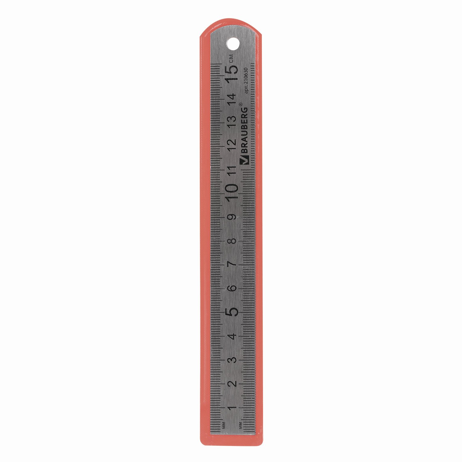 Линейка металлическая 15 см, BRAUBERG, европодвес, 210630