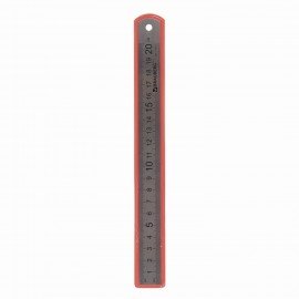 Линейка изготовлена из высококачественной пружинистой стали. Имеет безопасные закруглённые углы и четкую контрастную миллиметровую шкалу. Длина шкалы составляет 20 см. Упакована в ПВХ-чехол с подвесом.