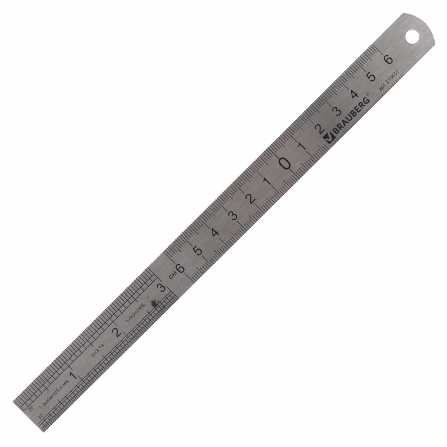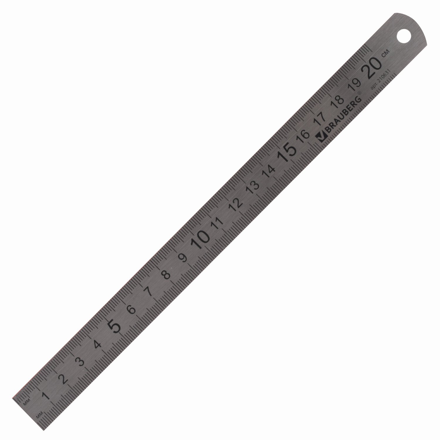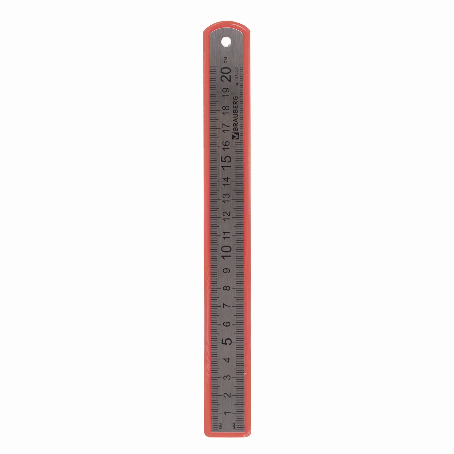 Линейка металлическая 20 см, BRAUBERG, европодвес, 210631