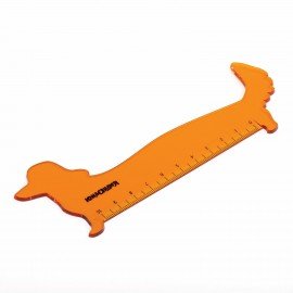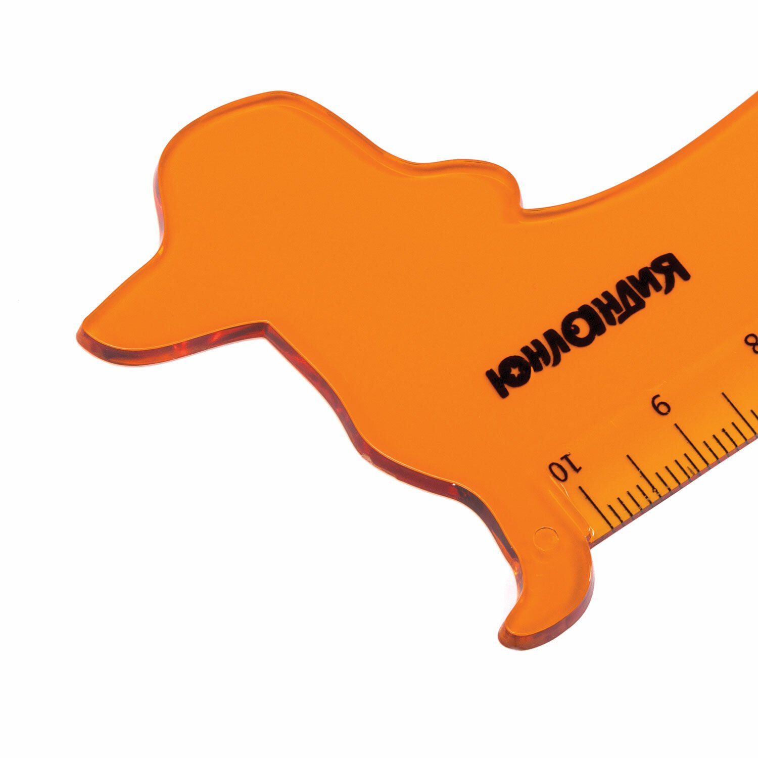 Прозрачная линейка выполнена из оранжевого тонированного пластика в виде собаки породы «Такса». Имеет безопасные закруглённые углы. Длина шкалы составляет 10 см. Линейка обладает четкой разметкой, что делает ее удобной в использовании. Упакована в пакет с европодвесом.