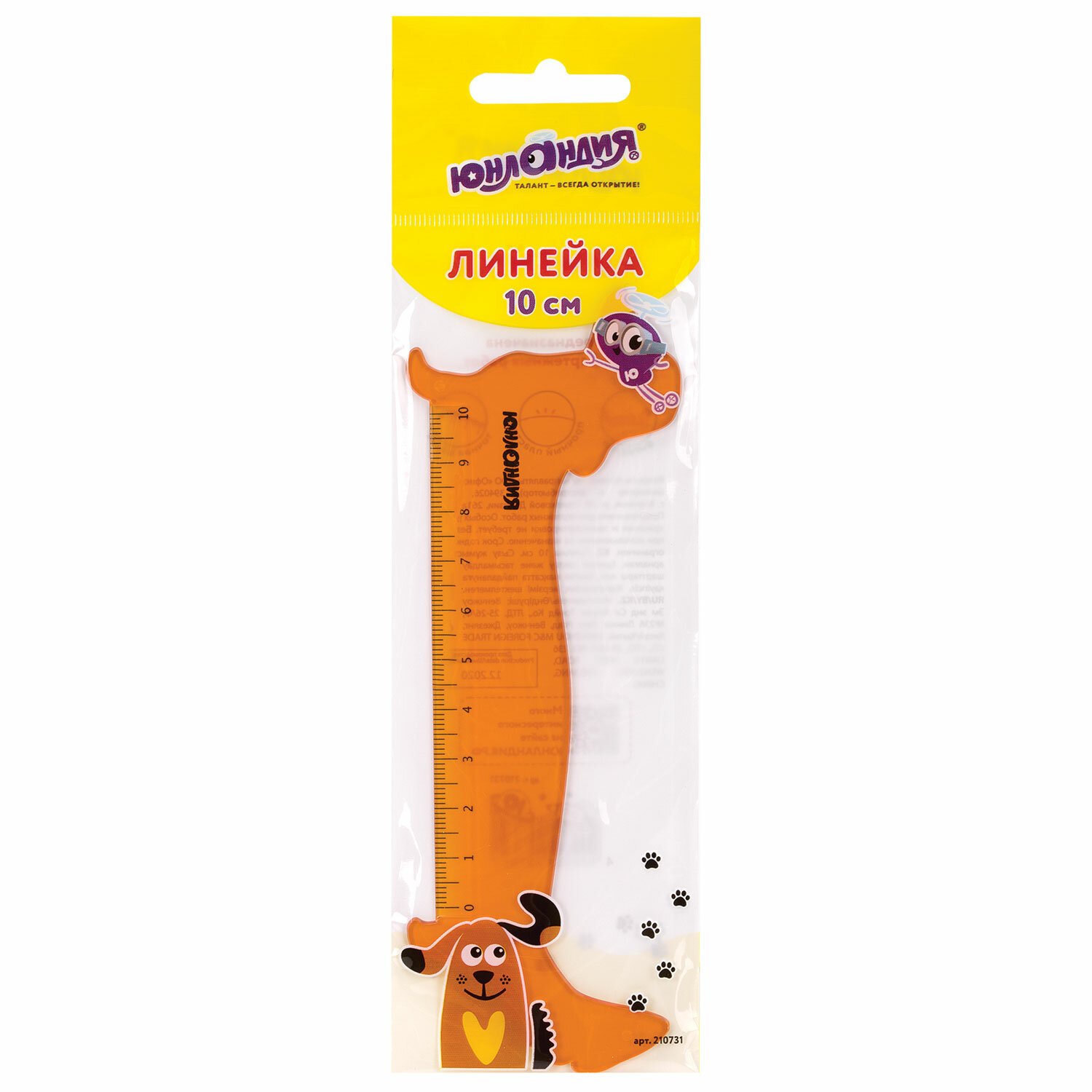 Линейка пластик 10 см ЮНЛАНДИЯ "ТАКСА", фигурная, тонированная прозрачная, европодвес, 210731