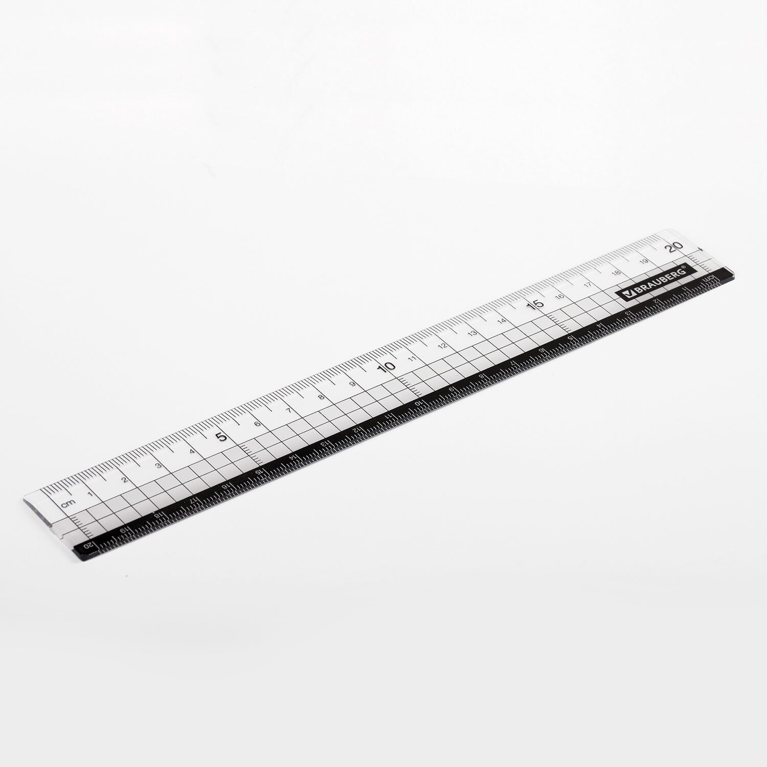 Линейка пластик 20 см BRAUBERG, прозрачная, черно-белая печать, европодвес, 210742
