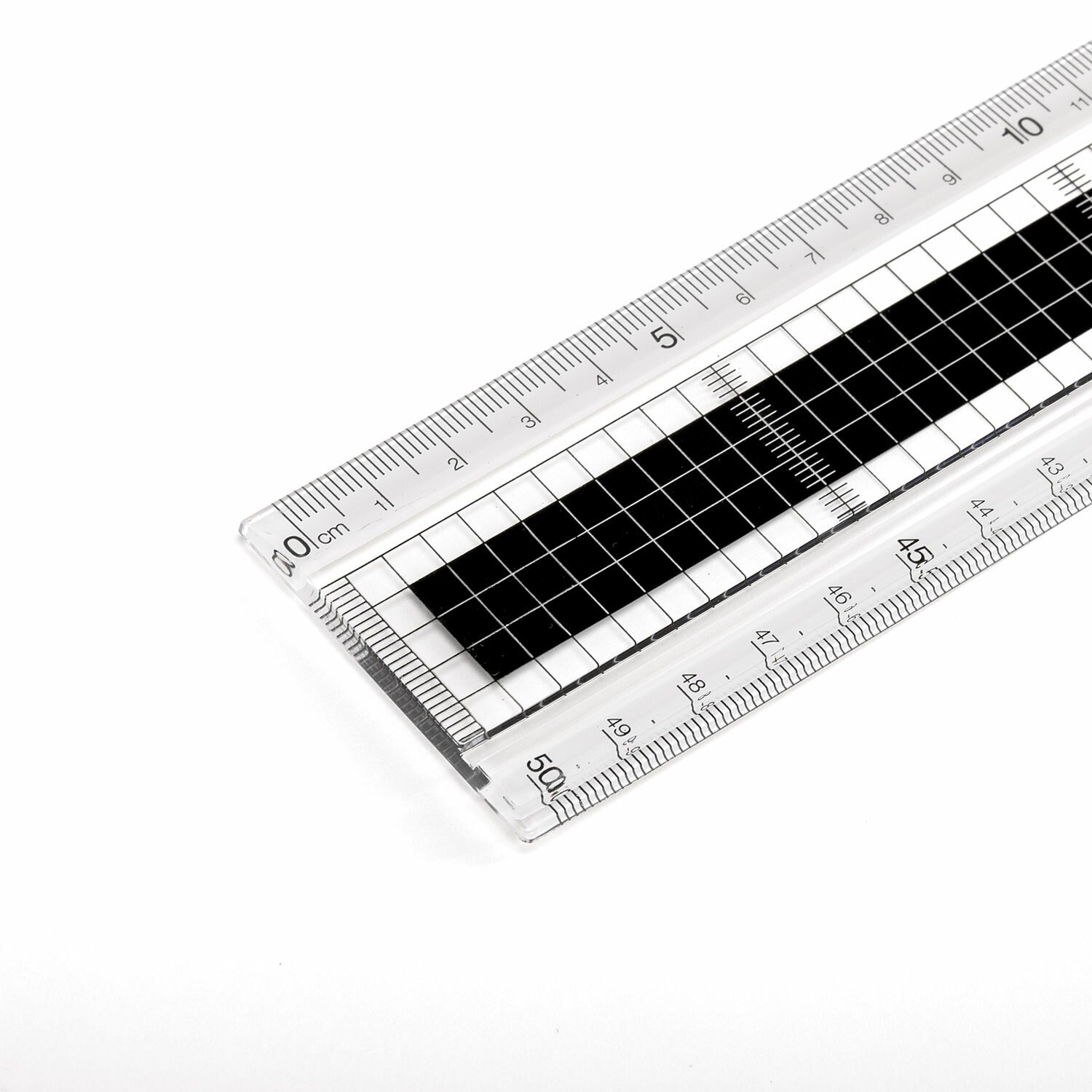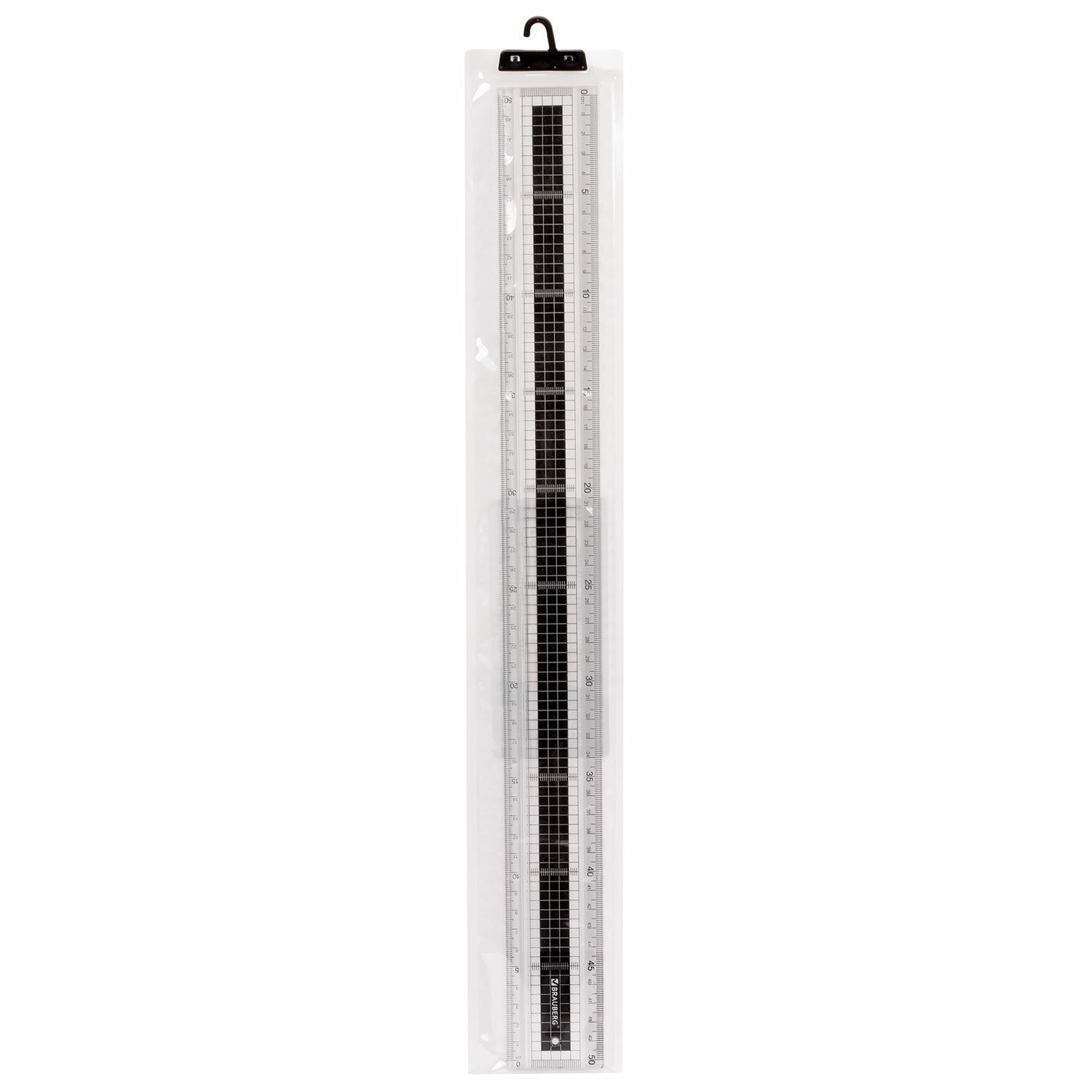 Линейка изготовлена из прозрачного прочного пластика. Длина шкалы составляет 50 см. Линейка обладает четкой разметкой, что делает ее удобной в использовании. Упакована в пакет с европодвесом.