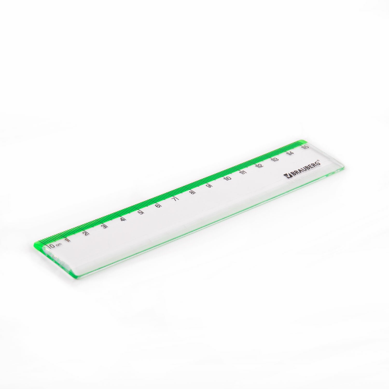 Линейка пластиковая 15 см BRAUBERG "FRESH ZONE", прозрачная, с салатовой шкалой, 210748