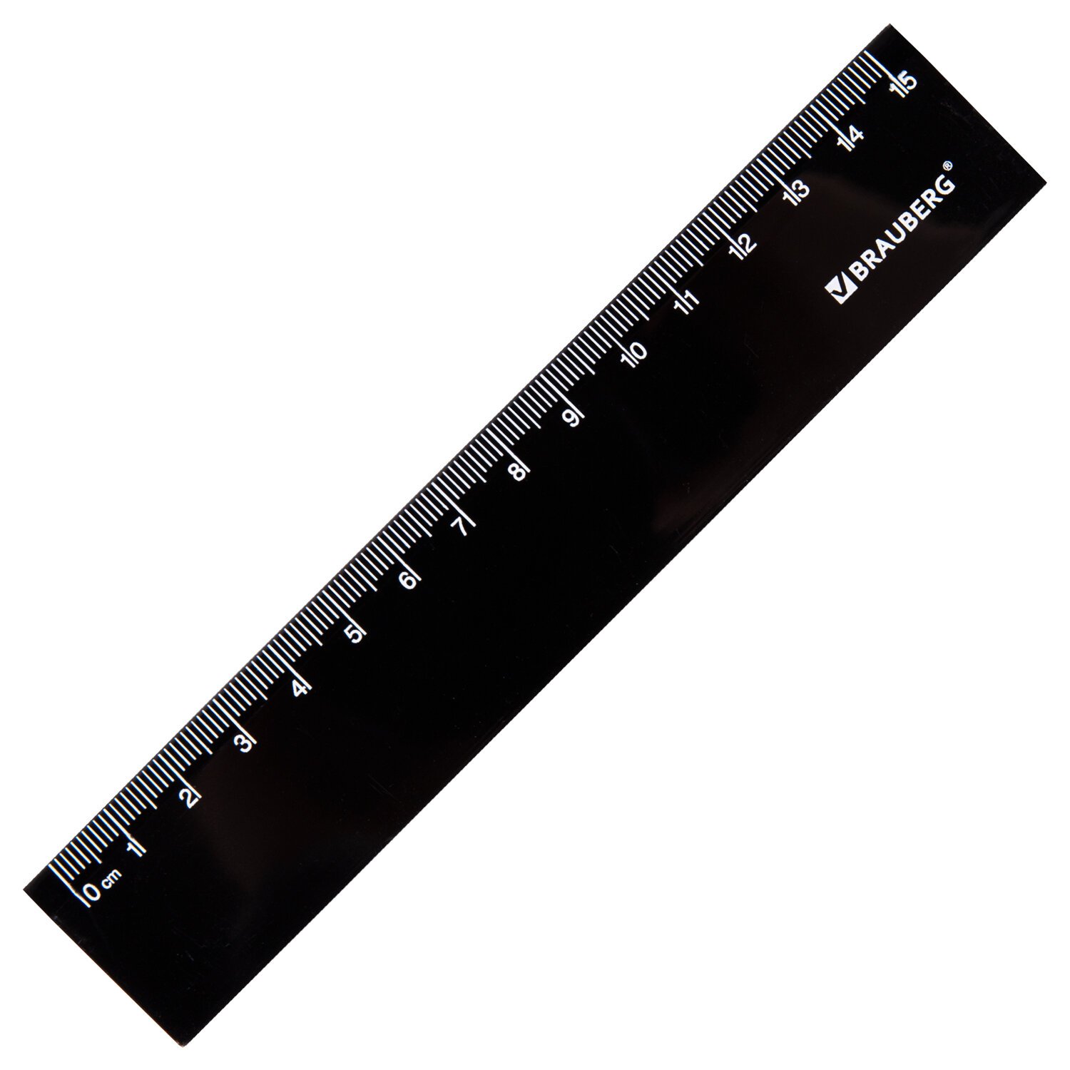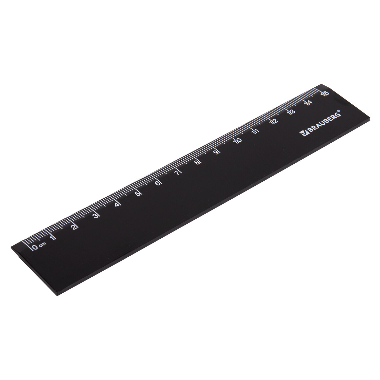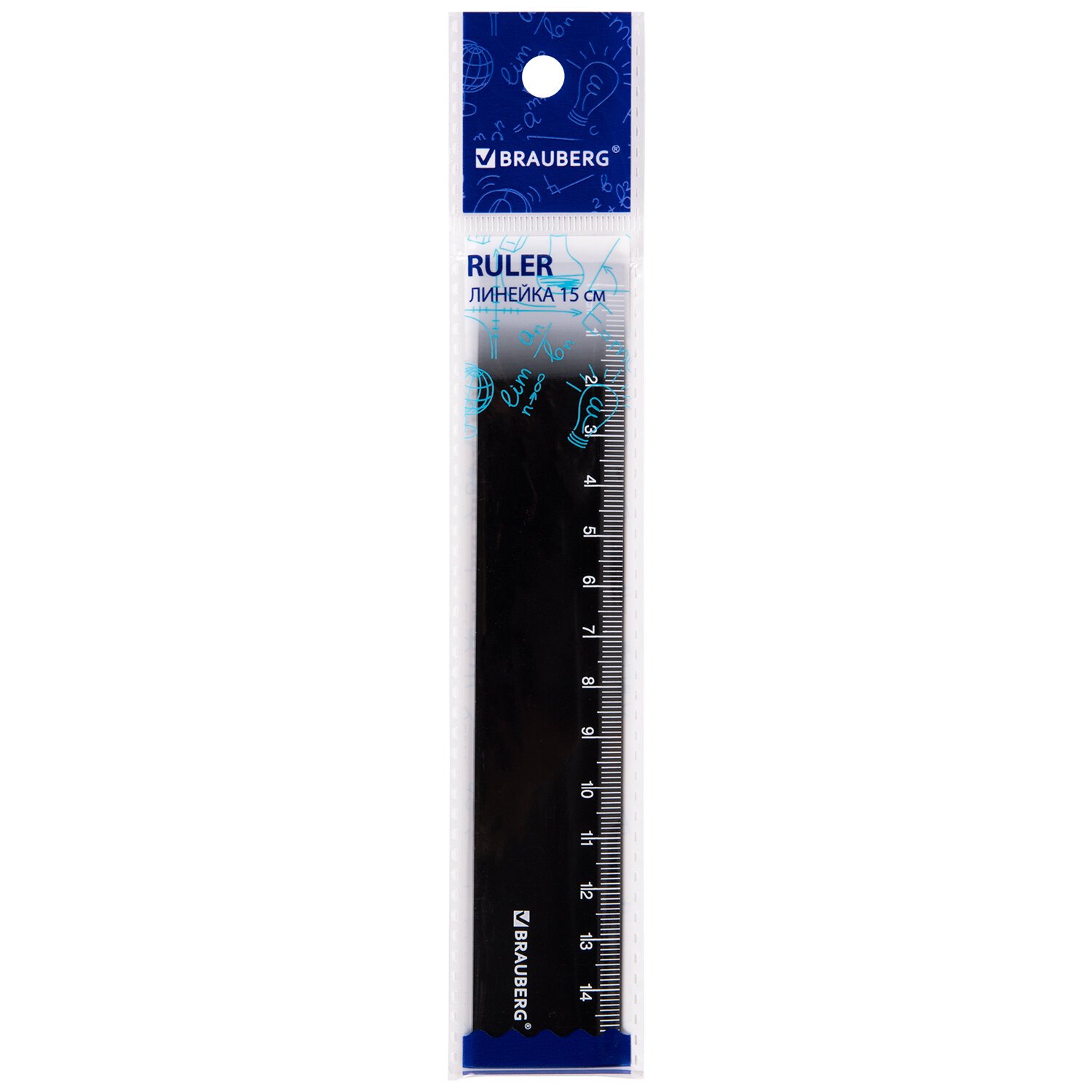 Линейка пластиковая 15 см BRAUBERG, непрозрачная, черная, 210774