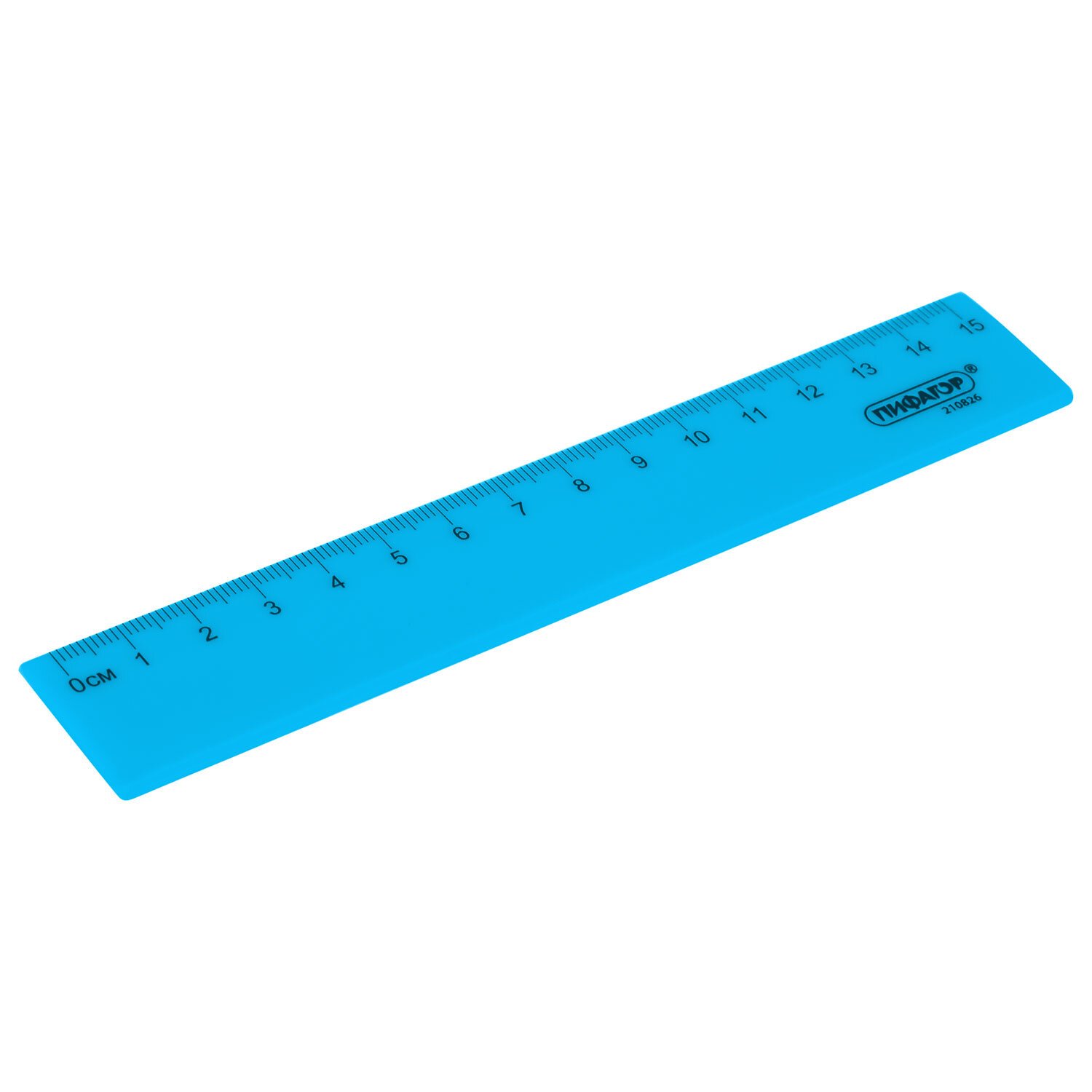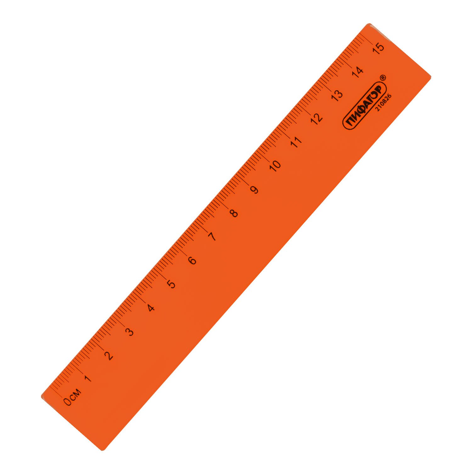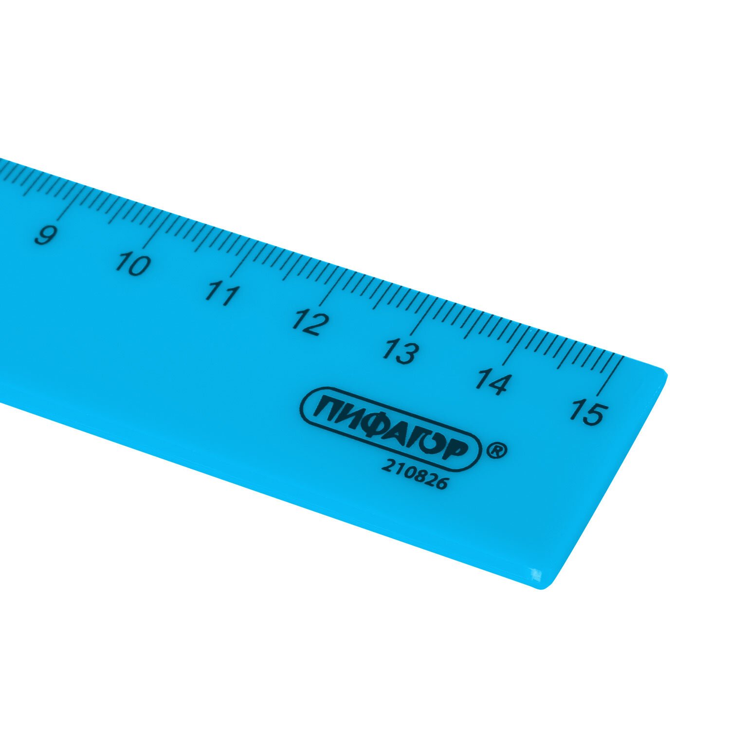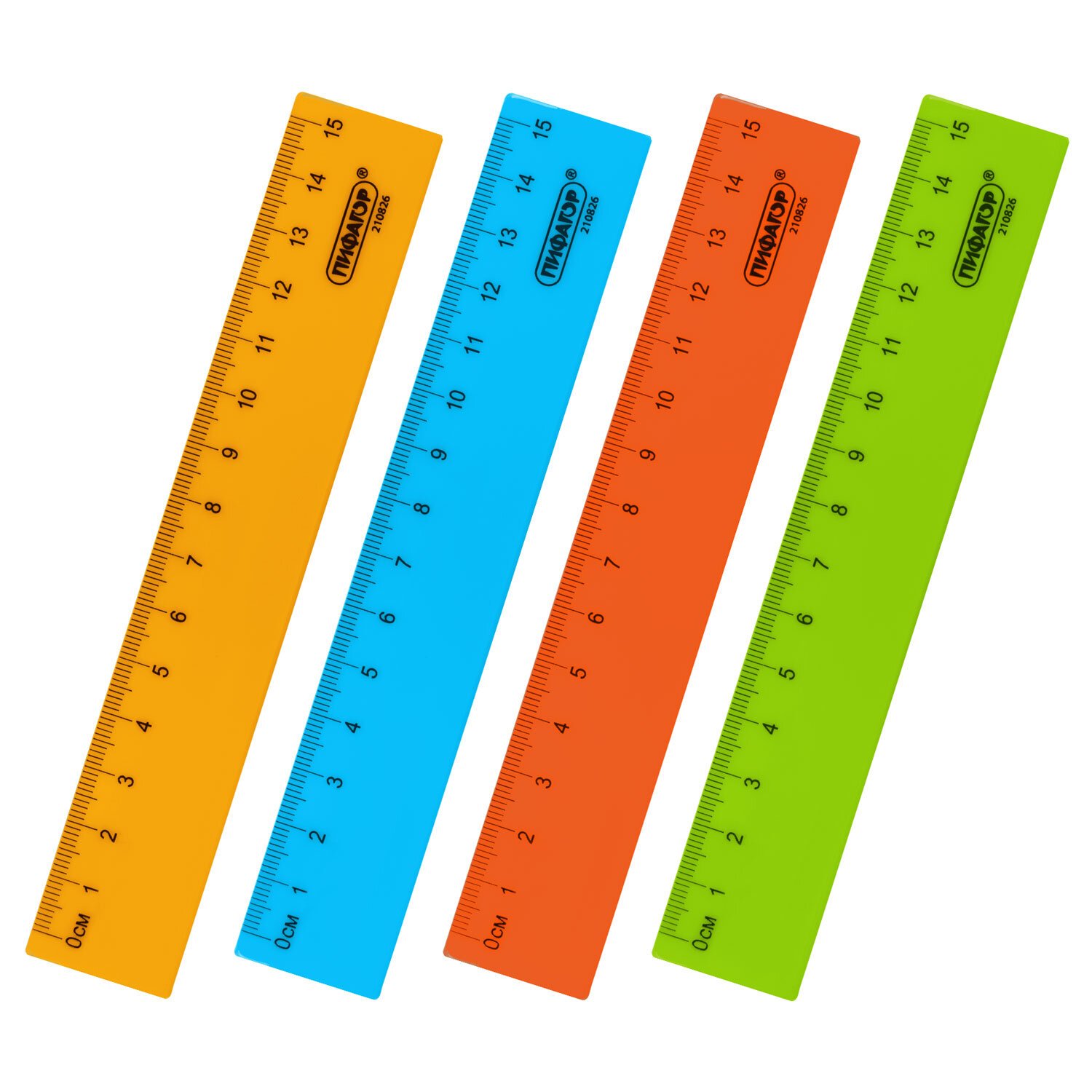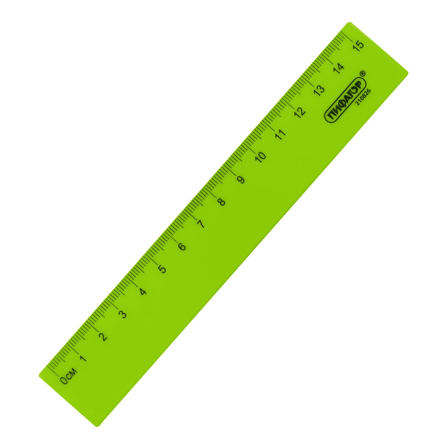 Линейка пластиковая 15 см ПИФАГОР, неоновая, ассорти, 210826