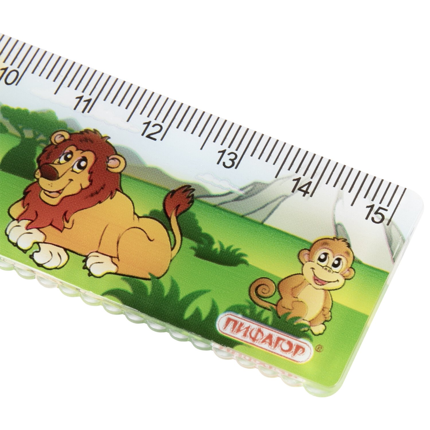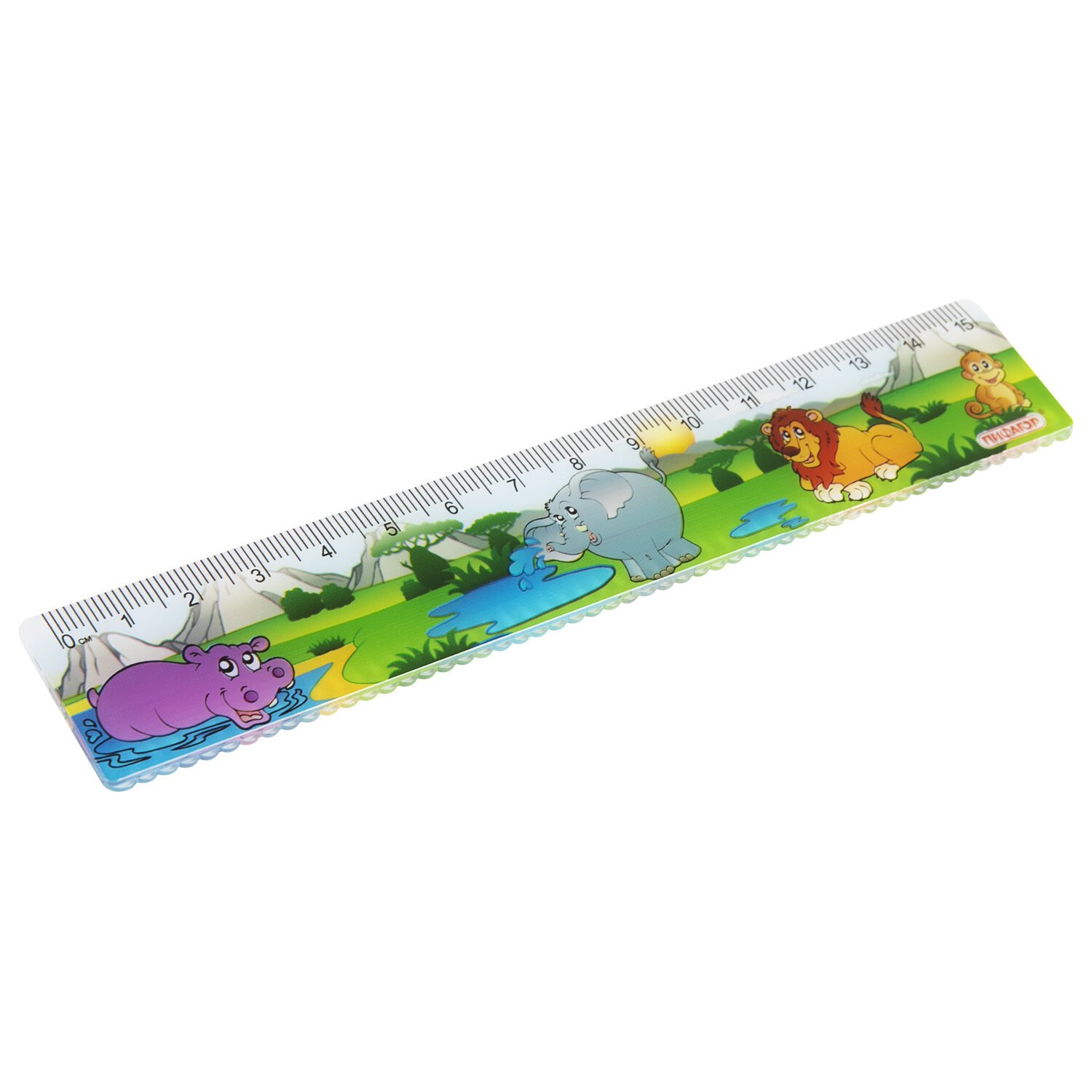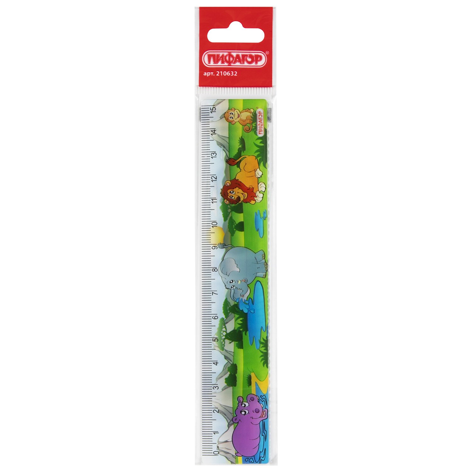 Линейка пластиковая 15 см, ПИФАГОР "Сафари", цветная печать, с волнистым краем, европодвес, 210632