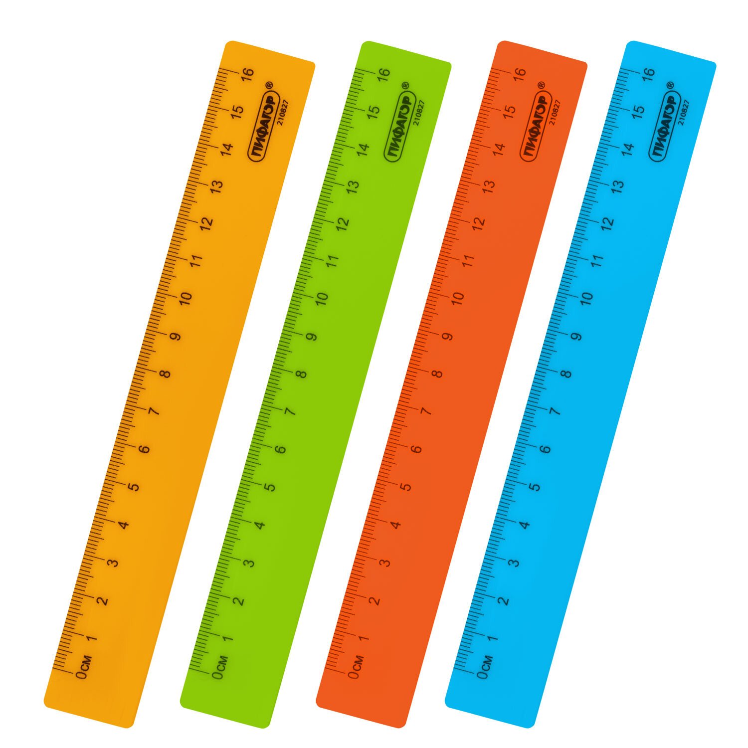 Линейка из прочного пластика. Имеет безопасные закруглённые углы и четкую контрастную миллиметровую шкалу. Длина шкалы составляет 16 см. Поставляется в нескольких вариантах цвета (без возможности выбора).