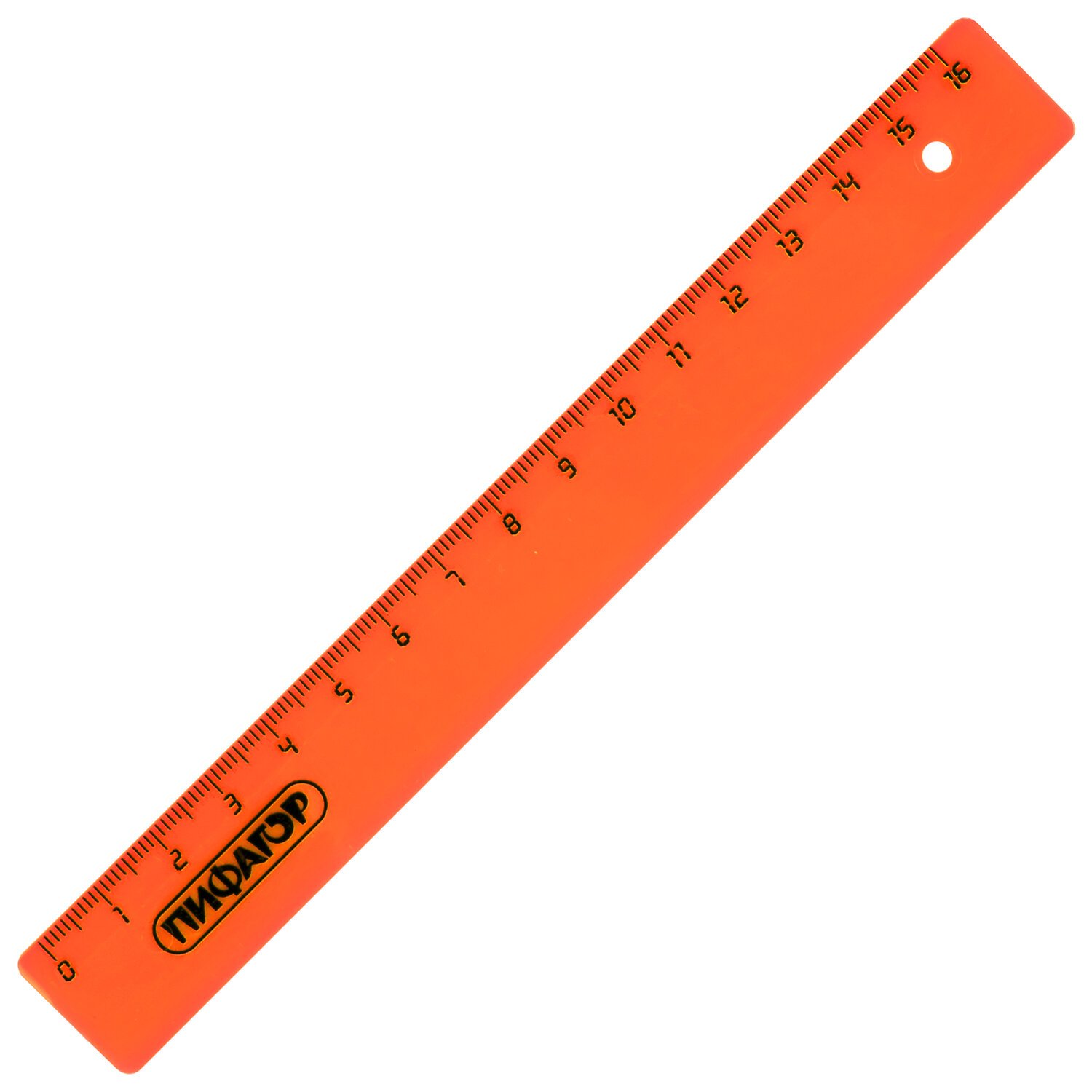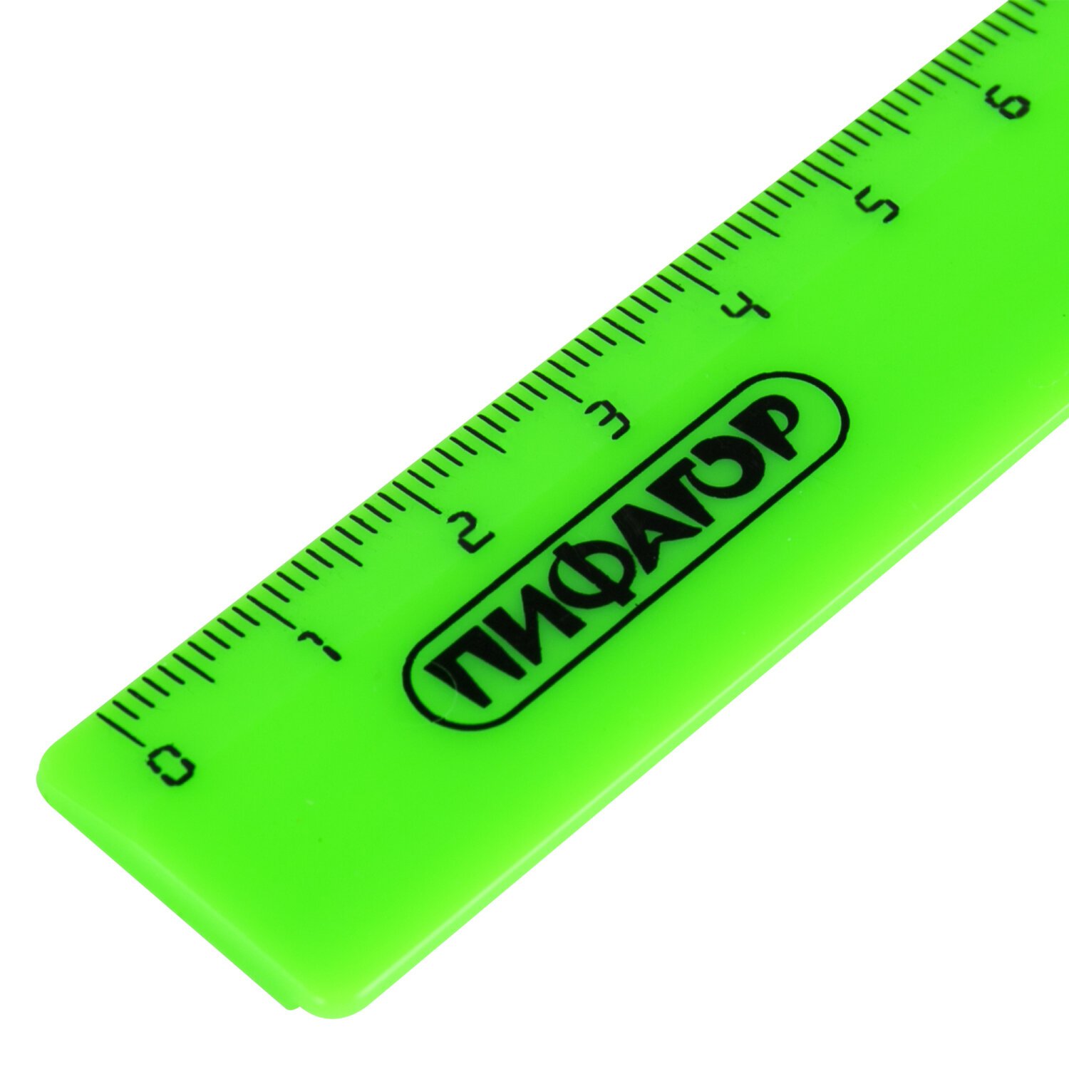 Линейка пластиковая 16 см, ПИФАГОР, непрозрачная, неоновая, ассорти, 210603
