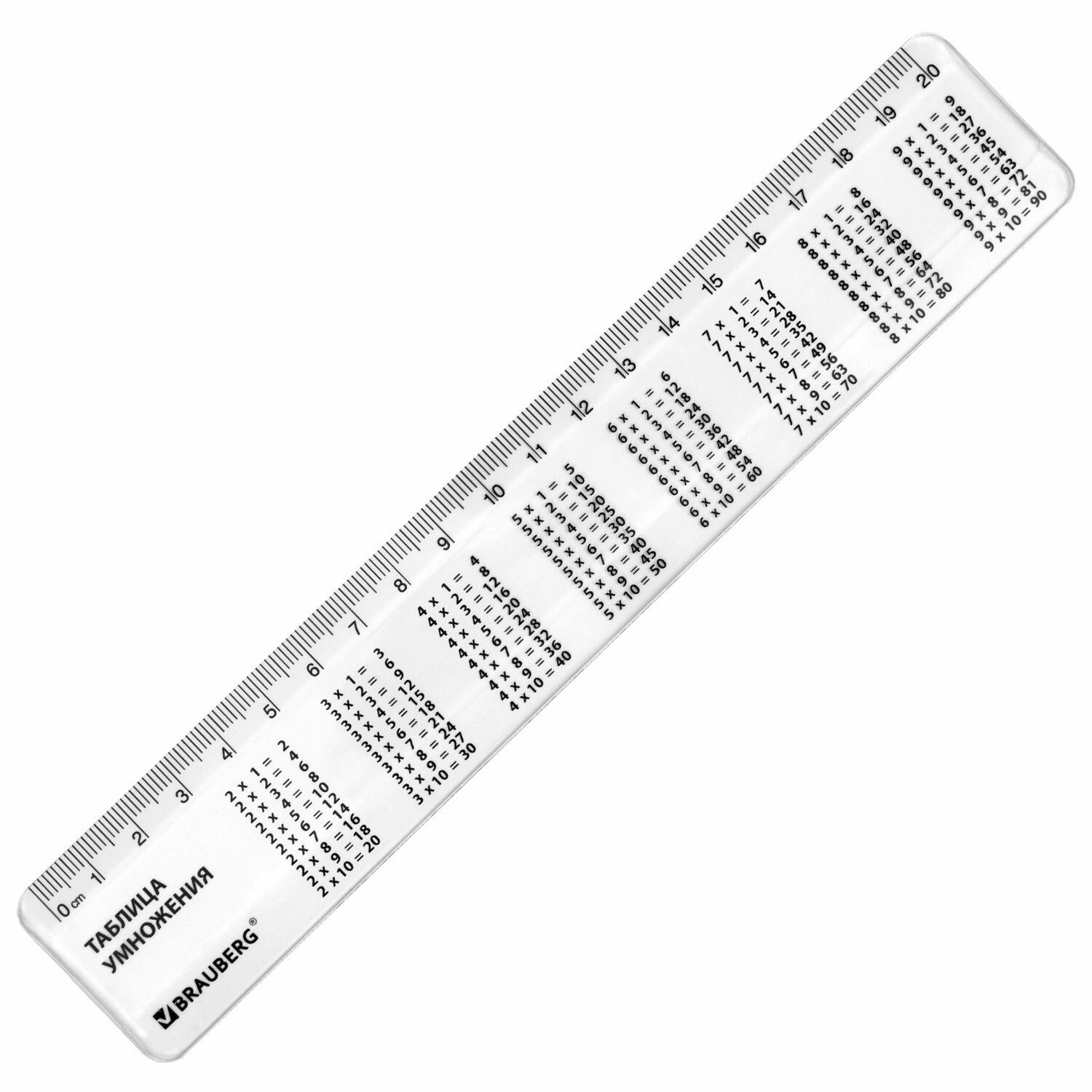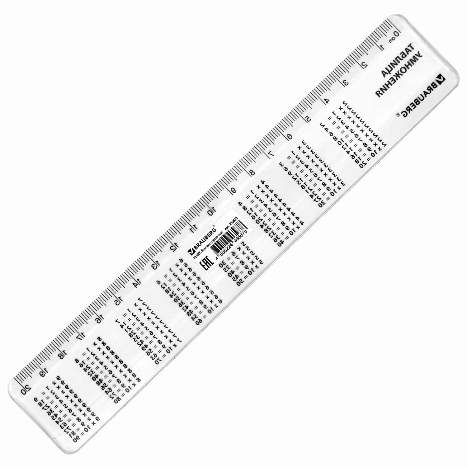 Линейка пластиковая 20 см, BRAUBERG, справочная, таблица умножения, 210832