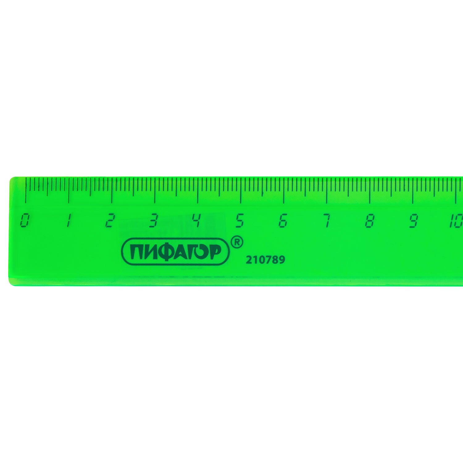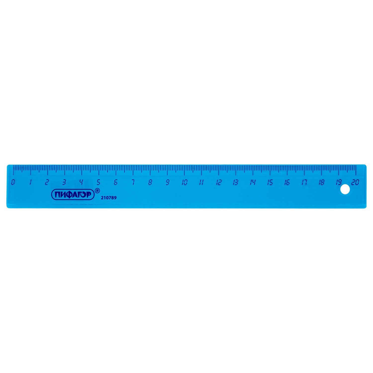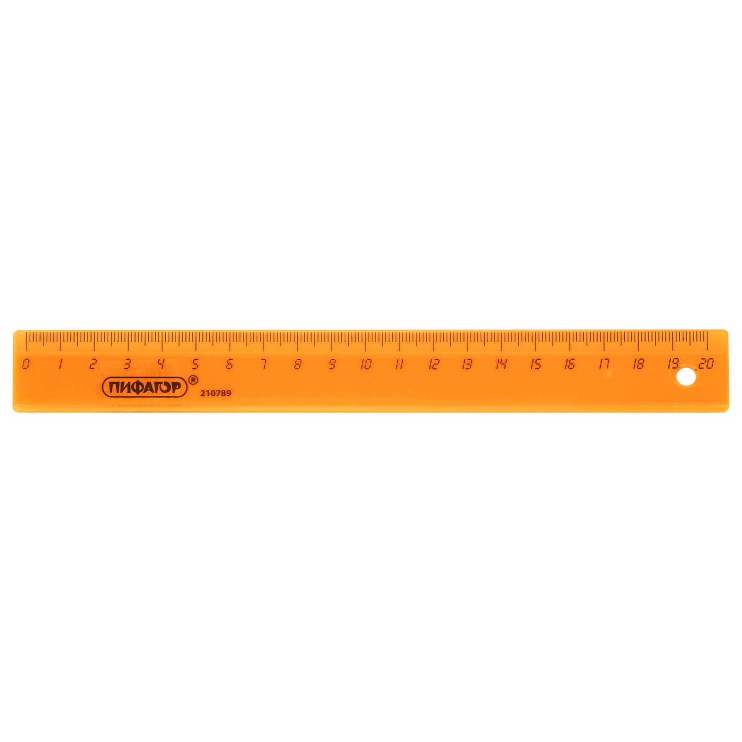 Линейка пластиковая 20 см ПИФАГОР, прозрачная, неоновая, ассорти, 210789