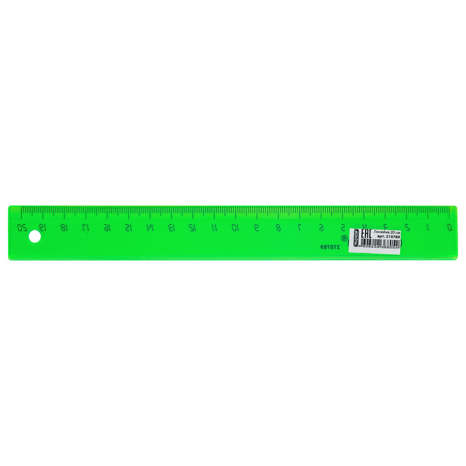 Линейка ярких неоновых цветов из прозрачного прочного пластика. Длина шкалы составляет 20 см. Линейка обладает четкой разметкой, что делает ее удобной в использовании.
