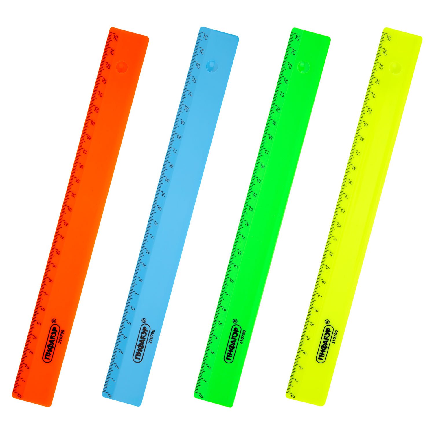 Линейка пластиковая 25 см ПИФАГОР, непрозрачная, неоновая, ассорти, 210790