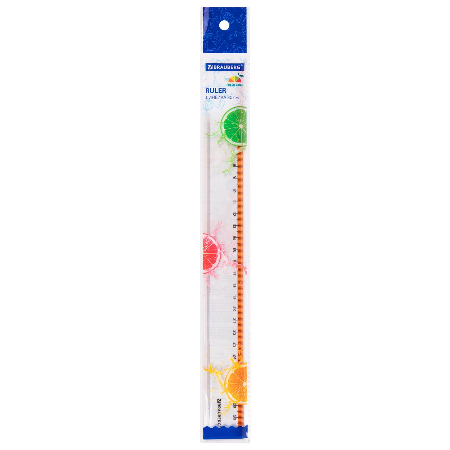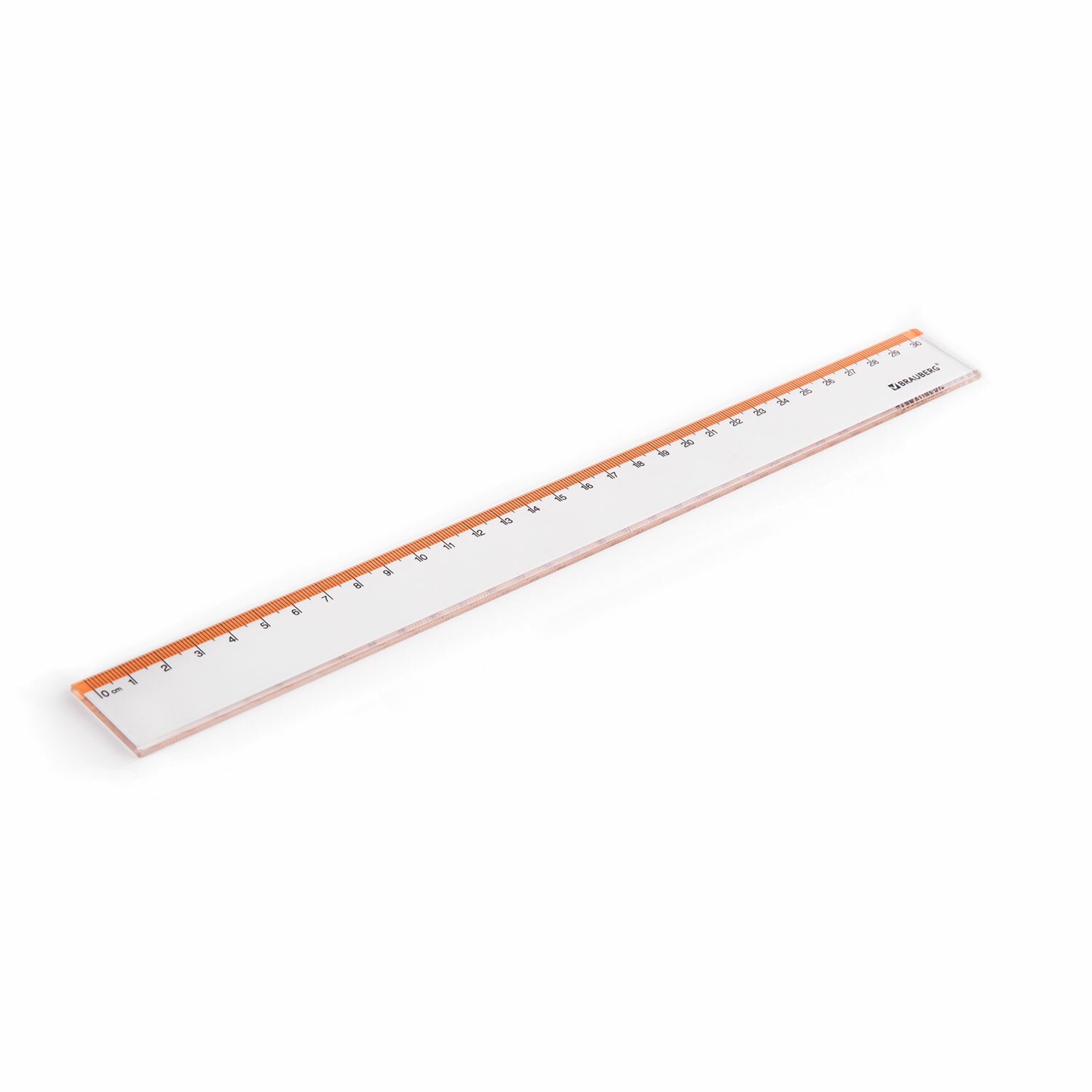 Линейка пластиковая 30 см BRAUBERG "FRESH ZONE", прозрачная, с оранжевой шкалой, 210759