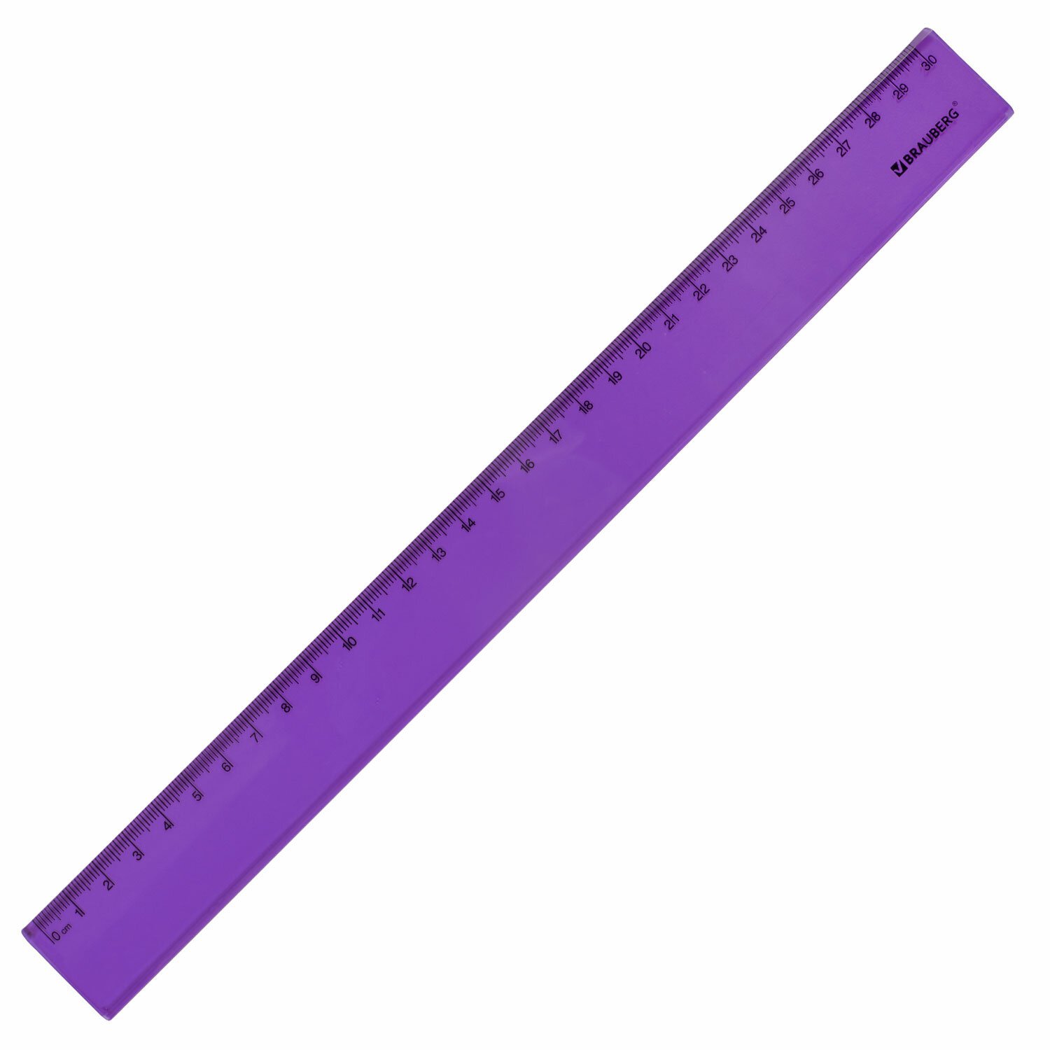 Линейка пластиковая 30 см BRAUBERG "NEON", непрозрачная, ассорти, 210751