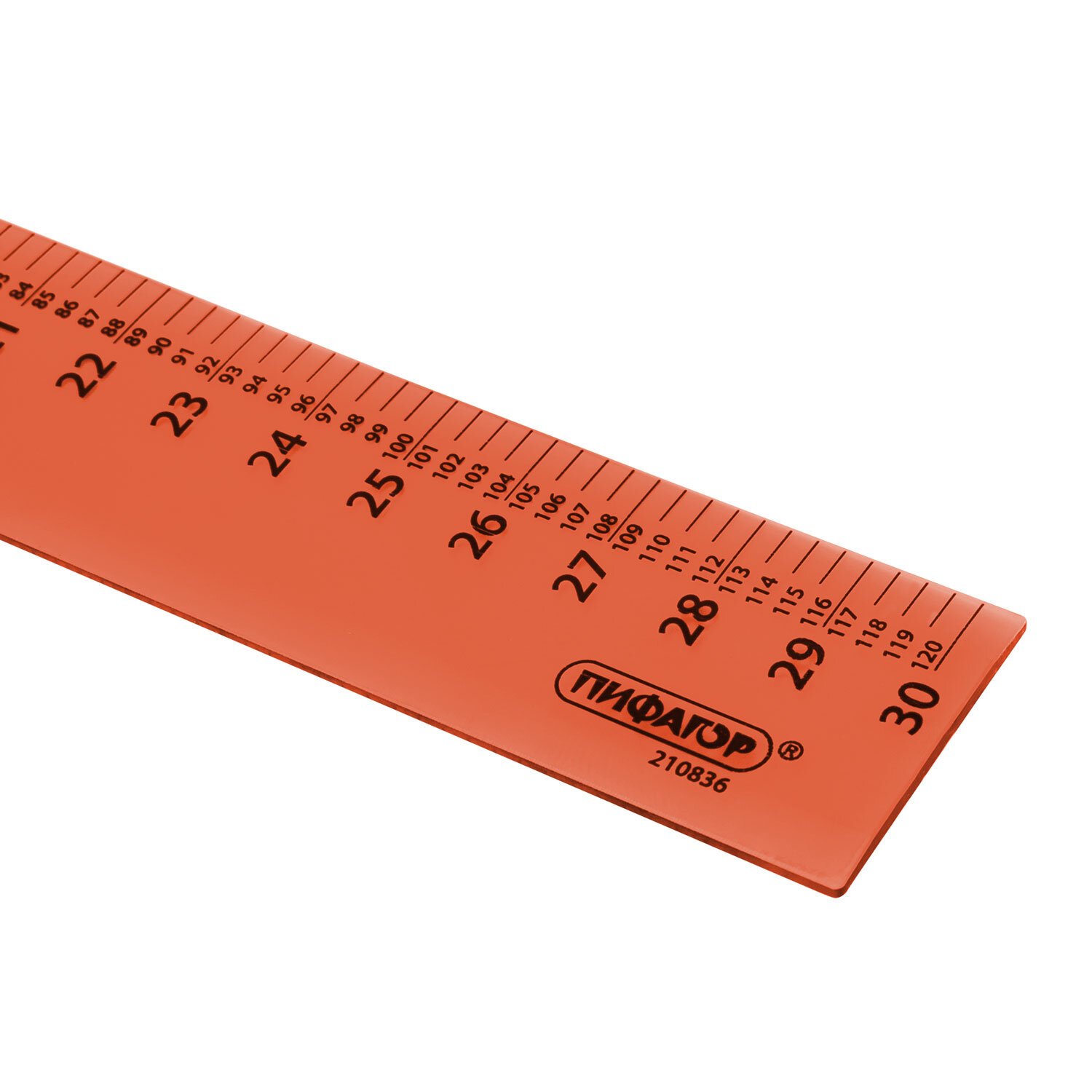 Линейка закройщика пластиковая 30 см ПИФАГОР, прозрачная, неоновая, шкала масштабная 1:4, 210836