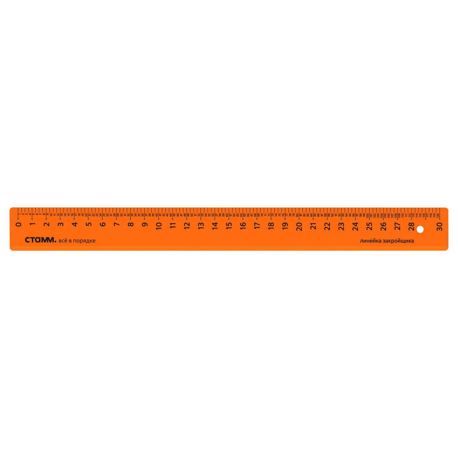 Линейка закройщика пластиковая 30 см, прозрачная, неоновая, шкала масштабная 1:4, ЛН72