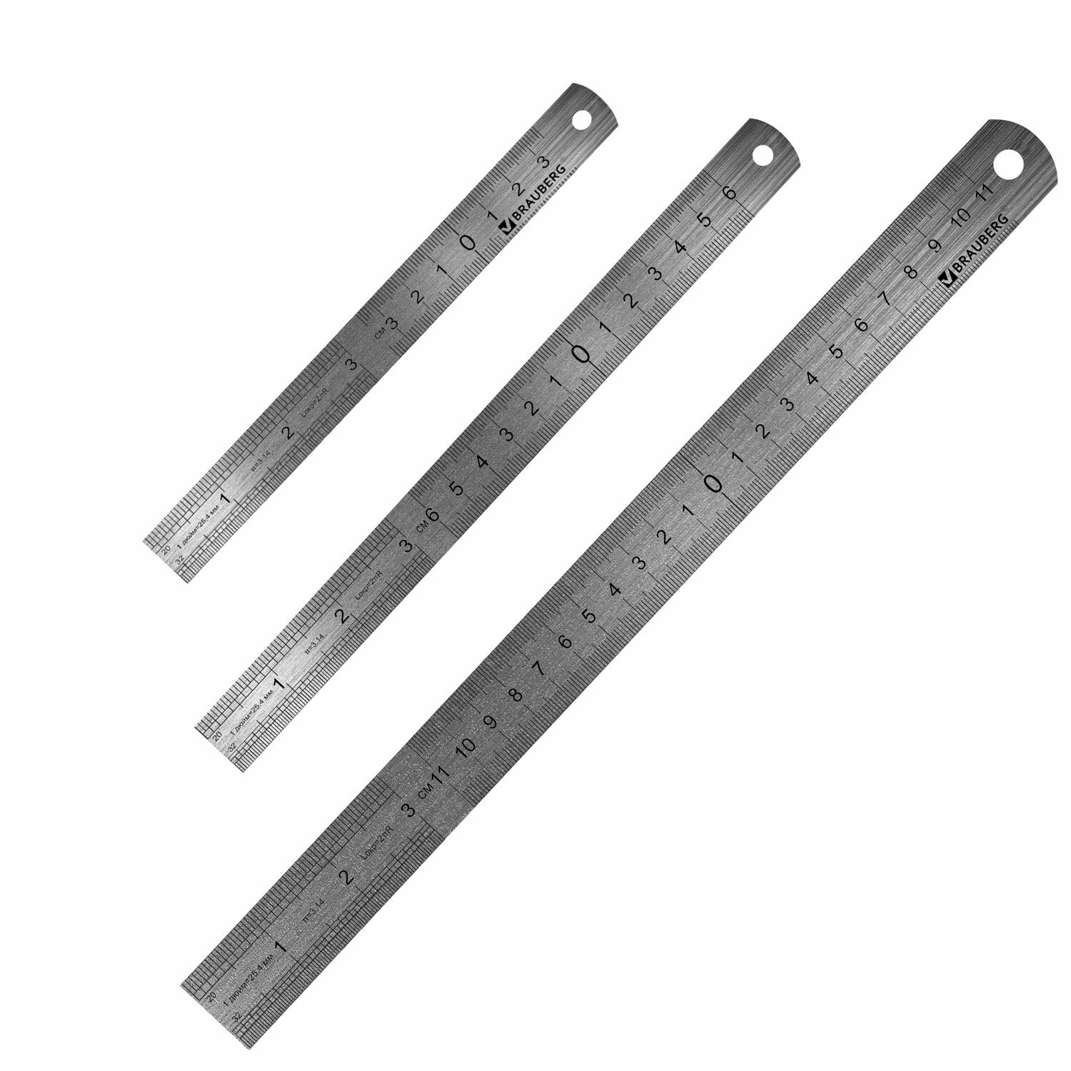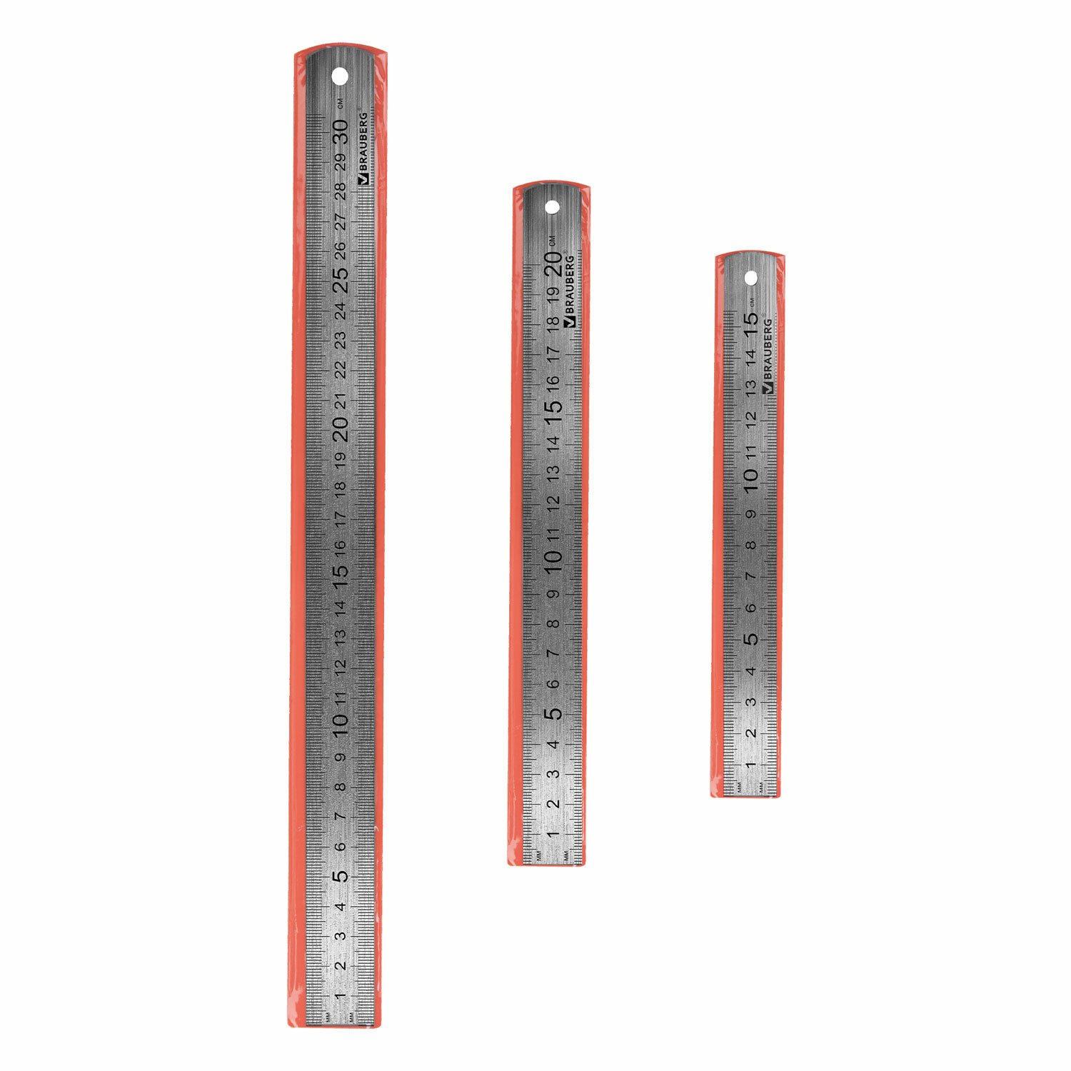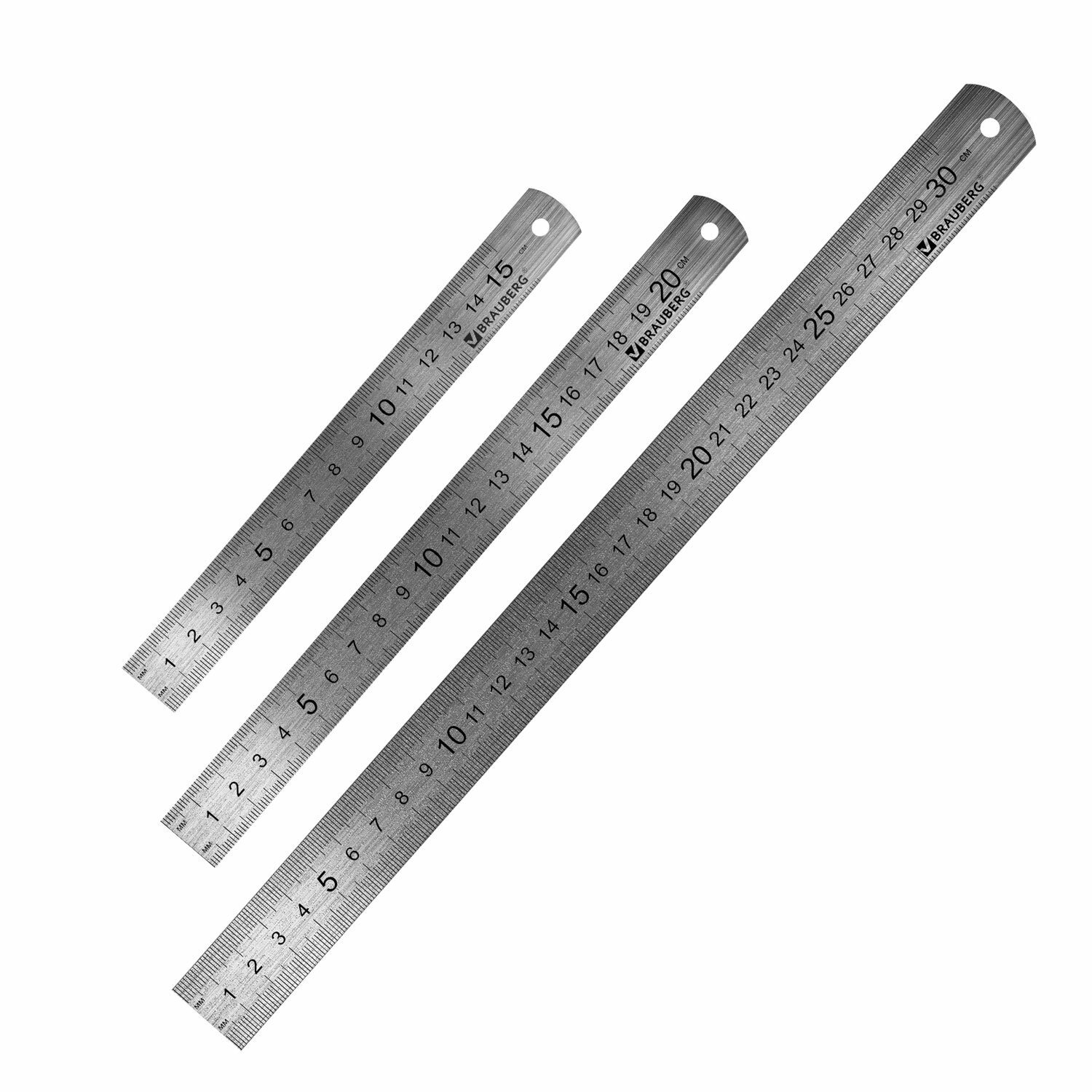 Линейки металлические КОМПЛЕКТ 3 шт. (15, 20, 30 см), BRAUBERG, 210811
