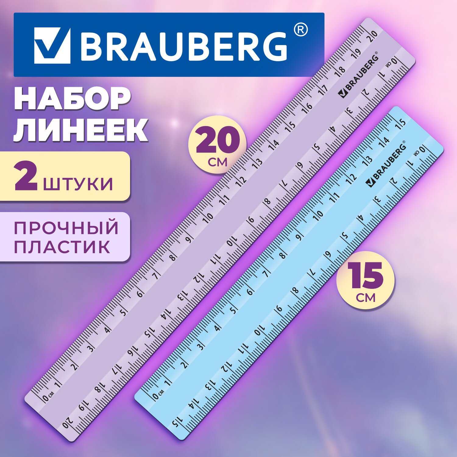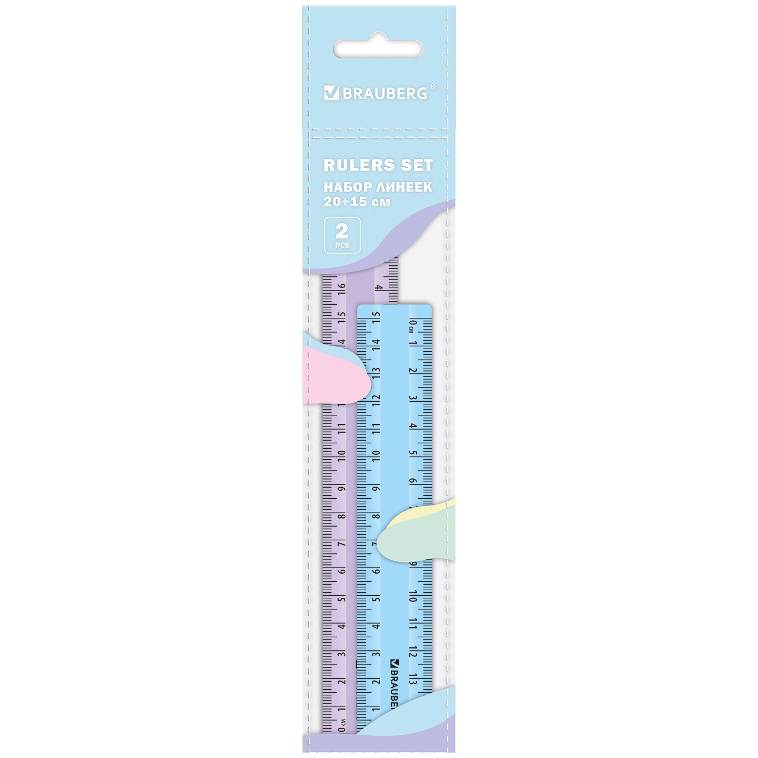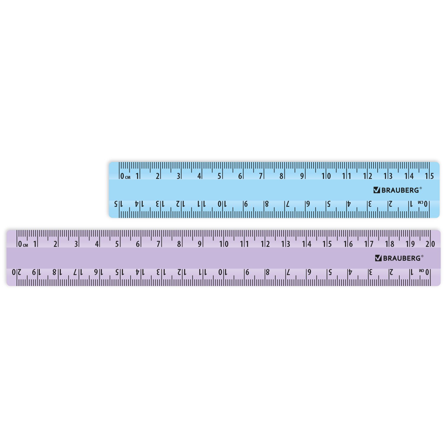 Линейки пластиковые 15, 20 см пастельные BRAUBERG, НАБОР 2 штуки, непрозрачные, европодвес, 210886