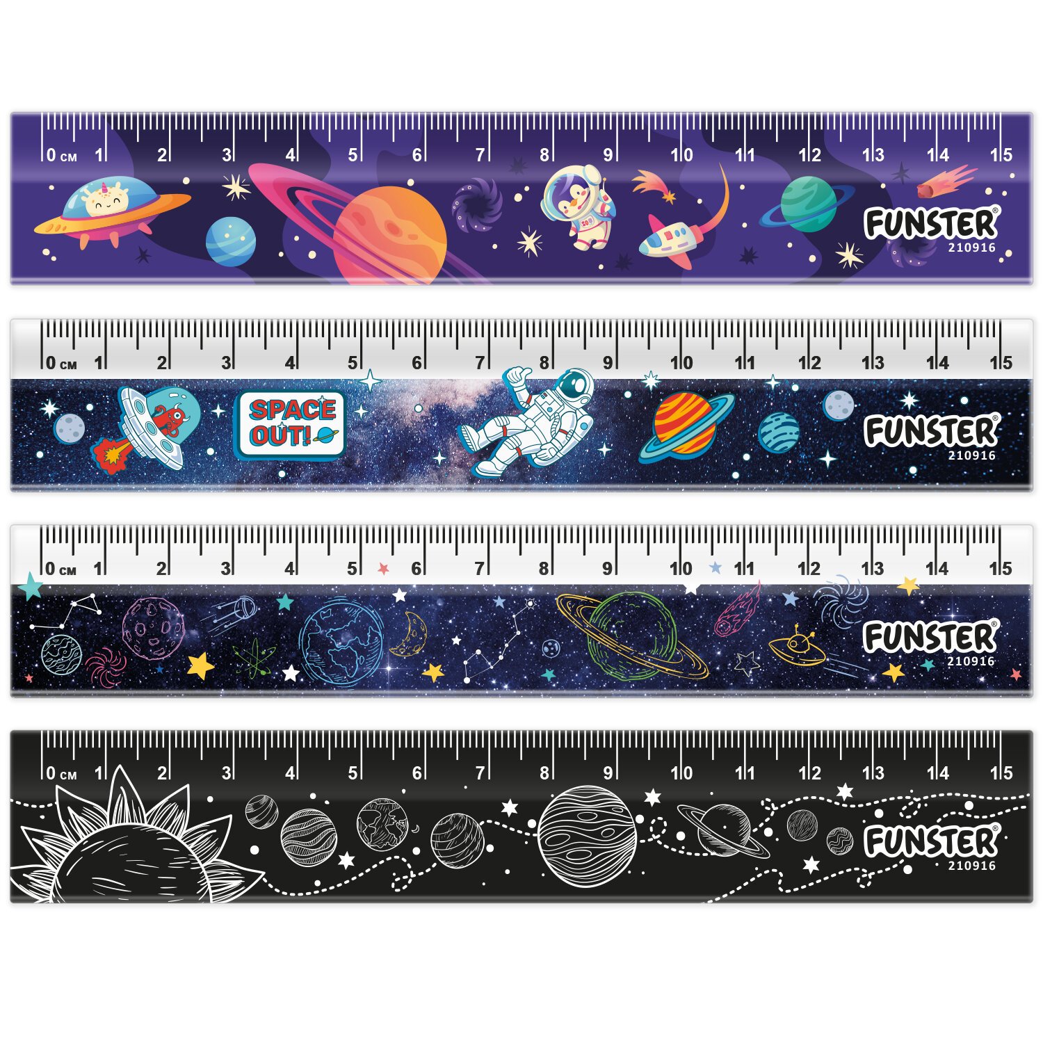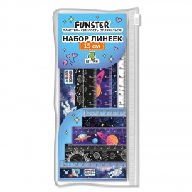 Линейки пластиковые 15 см FUNSTER, "КОСМОС", НАБОР 4 штуки, пенал, 210916