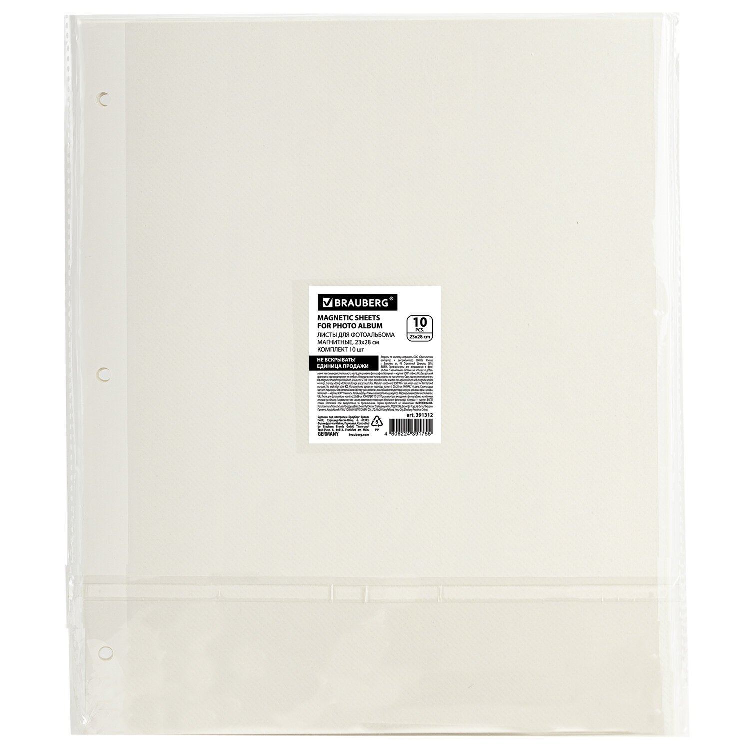 Листы для фотоальбома магнитные 23х28 см, КОМПЛЕКТ 10 шт., BRAUBERG, 391312