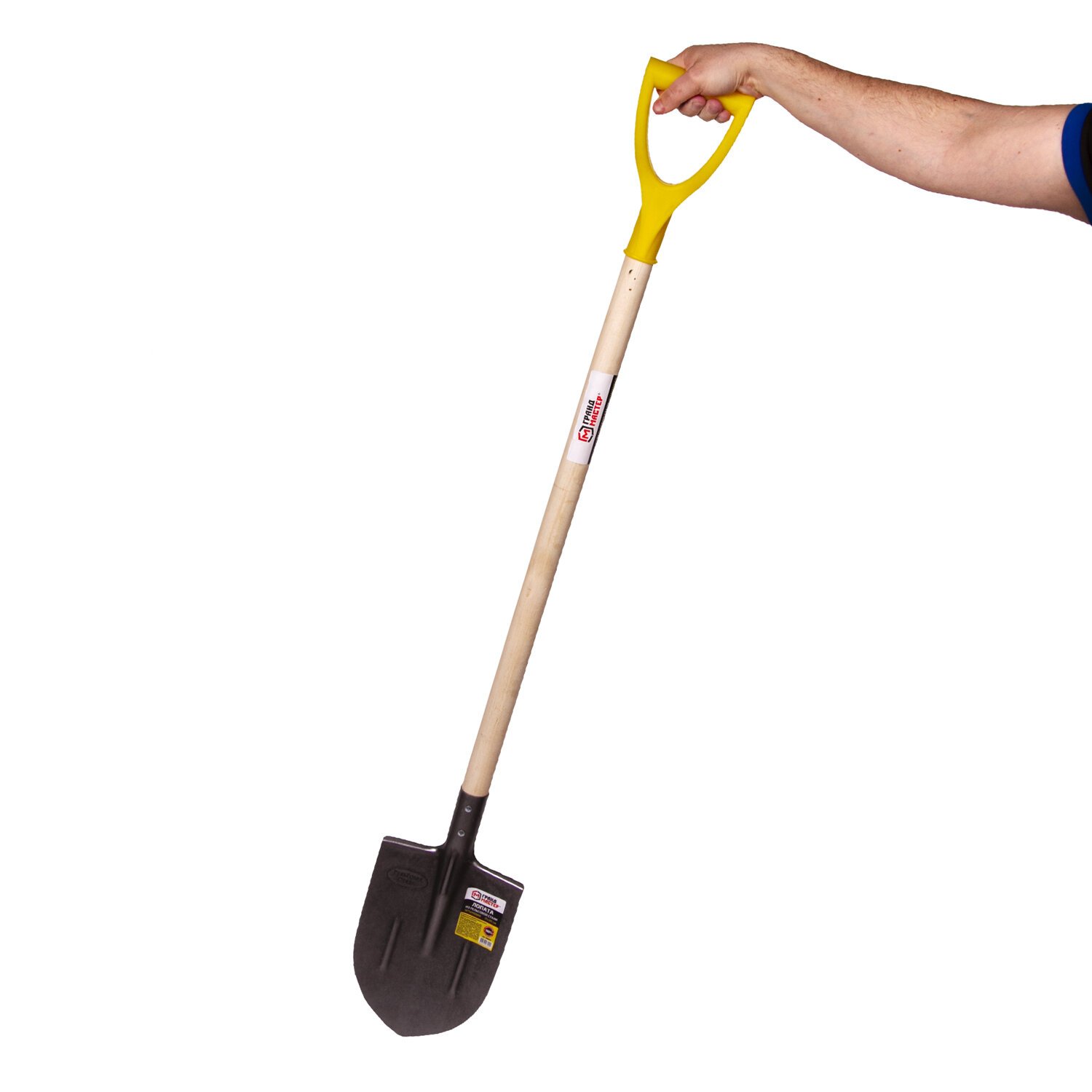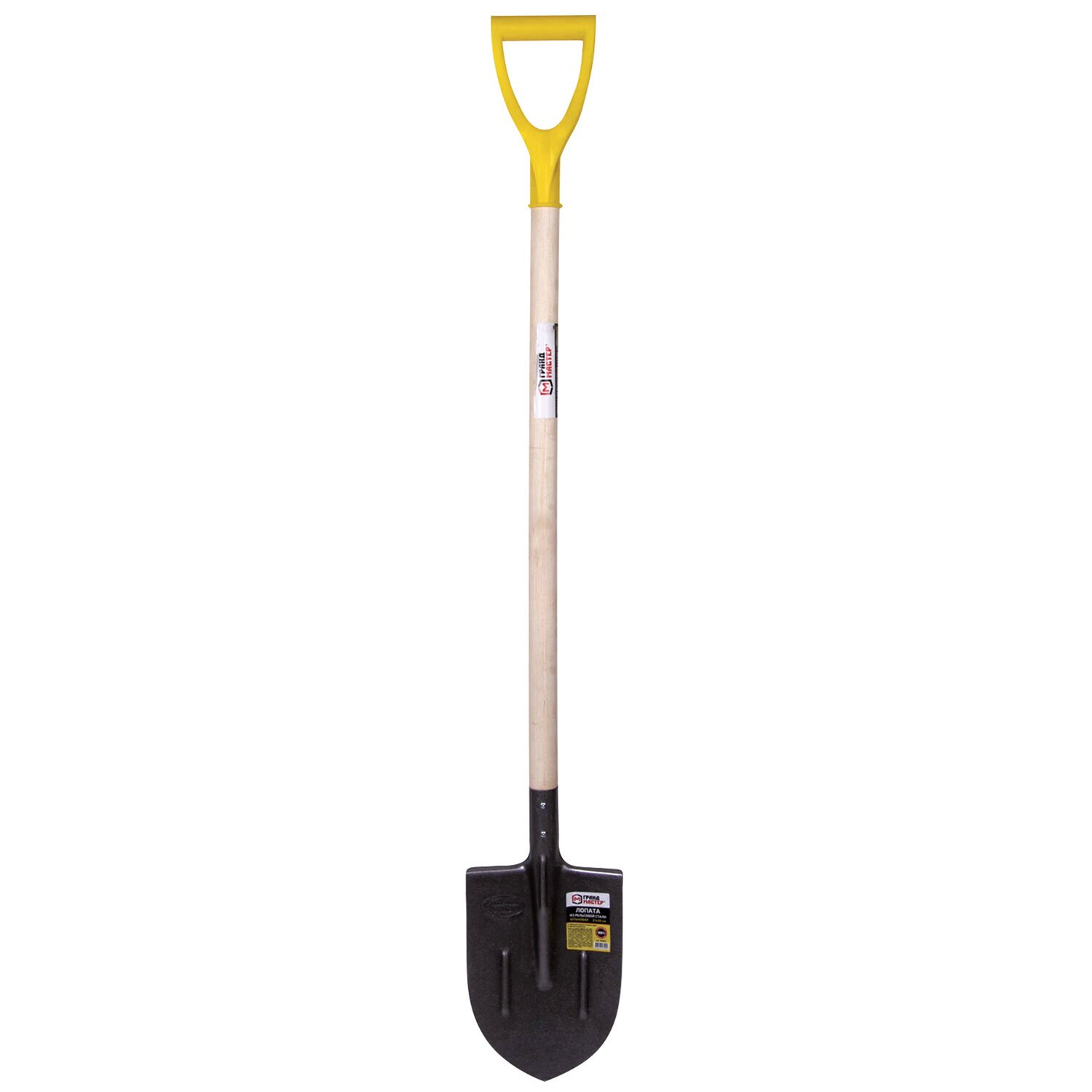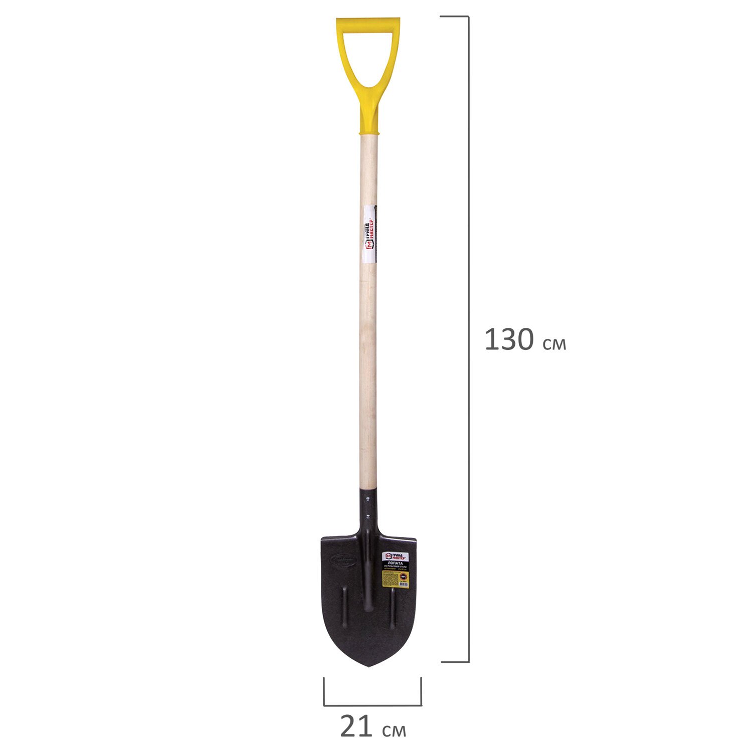 Лопата штыковая из рельсовой стали ГРАНДМАСТЕР, 21х36 см, высота 130 см, деревянный черенок, 606553