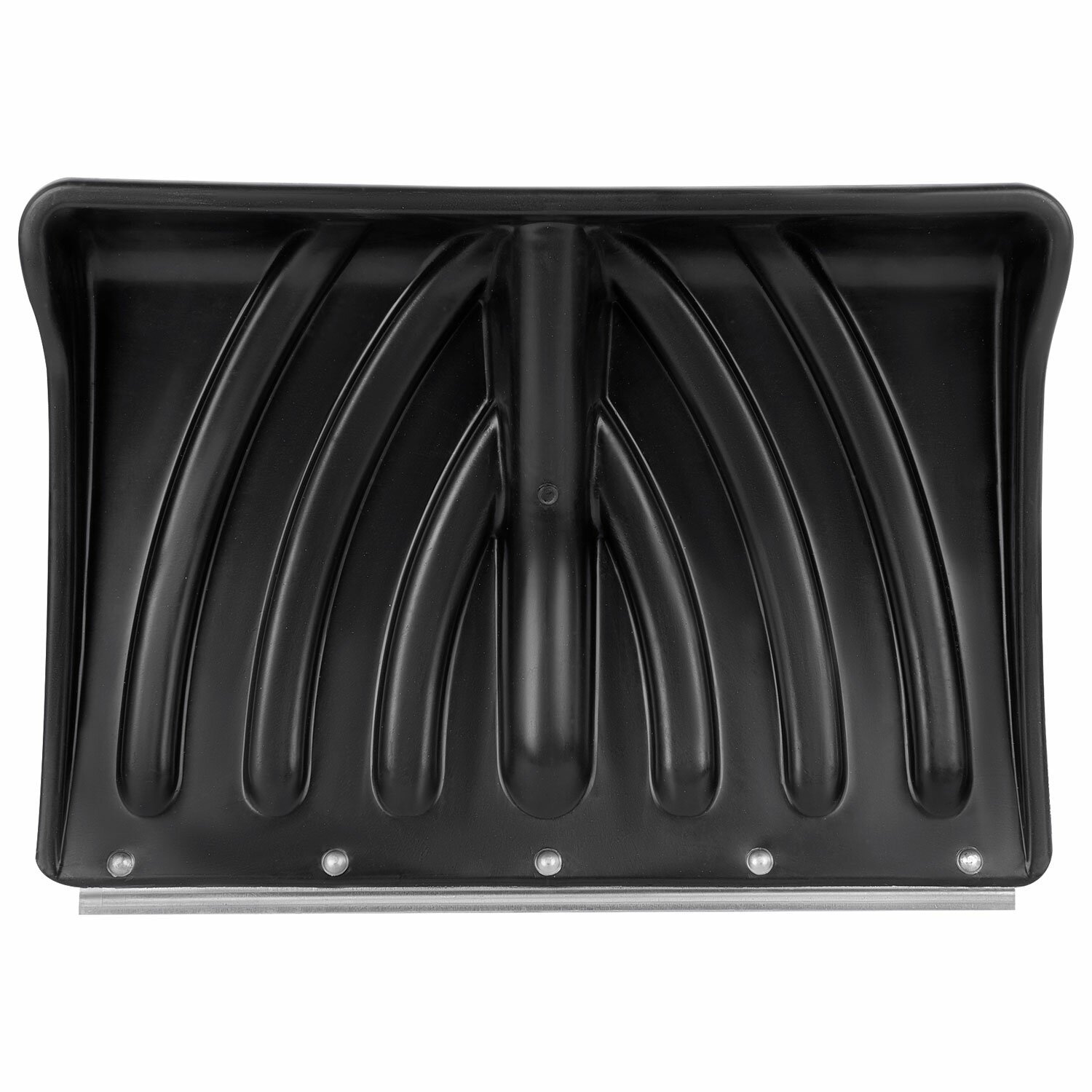 Лопата выполнена из ударопрочного и морозостойкого пластика, который выдерживает эксплуатацию при низких температурах (до -40 °C). Лопата усилена ребрами жесткости, что повышает ее прочностные характеристики, и снабжена оцинкованной планкой на заклепках, что значительно облегчает процесс уборки снега и продлевает срок службы инструмента.
