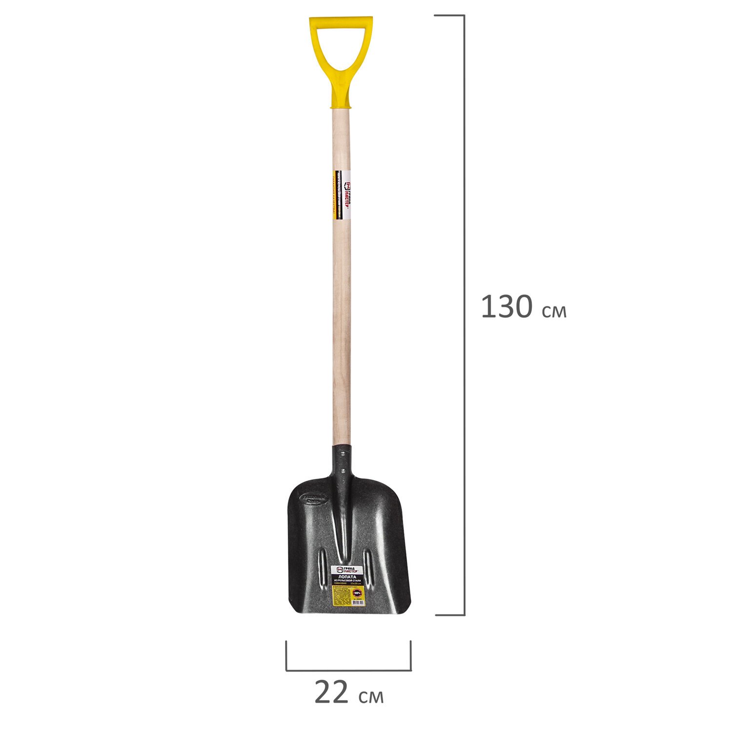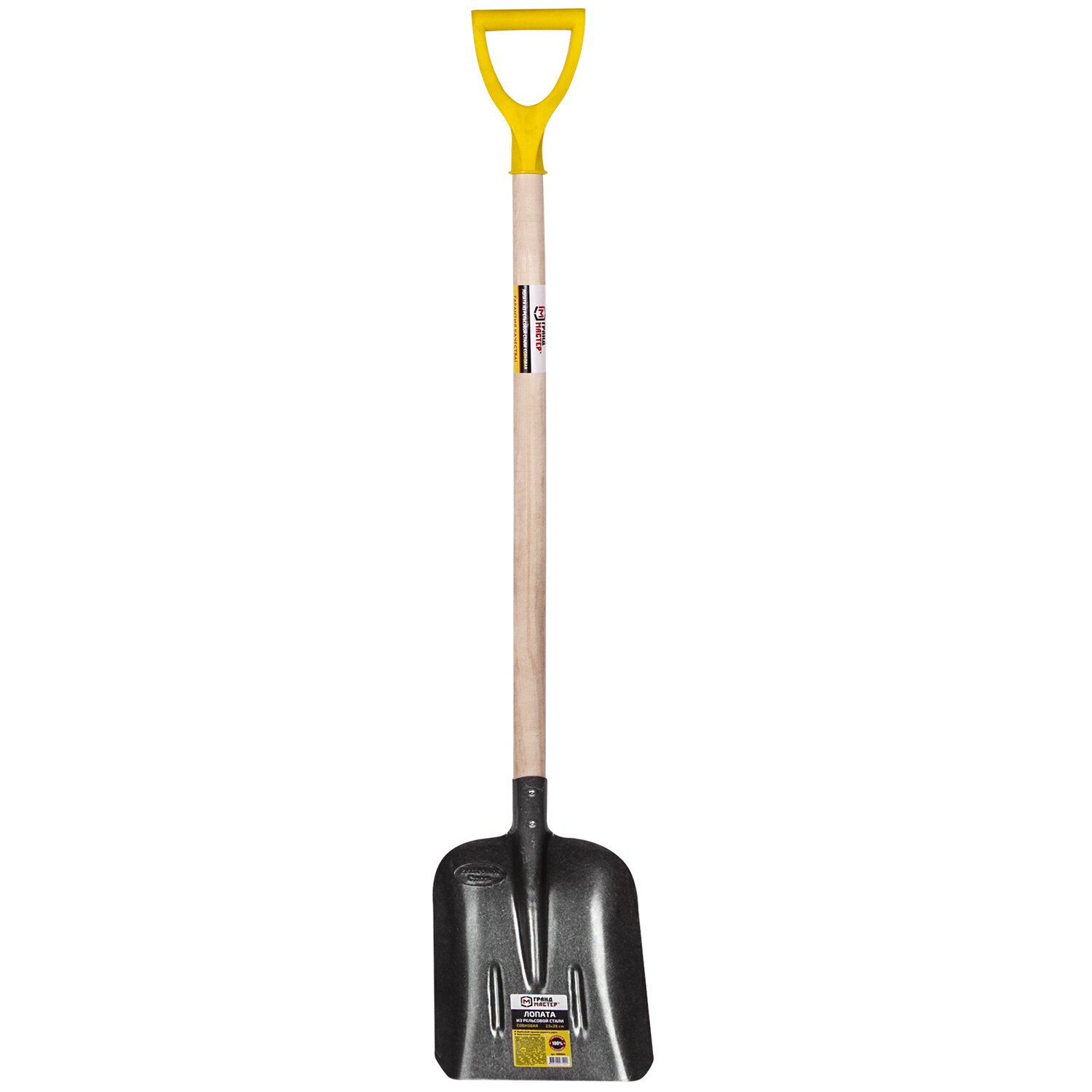 Лопата штыковая из рельсовой стали ГРАНДМАСТЕР, 21х36 см, высота 130 см, деревянный черенок, 606553