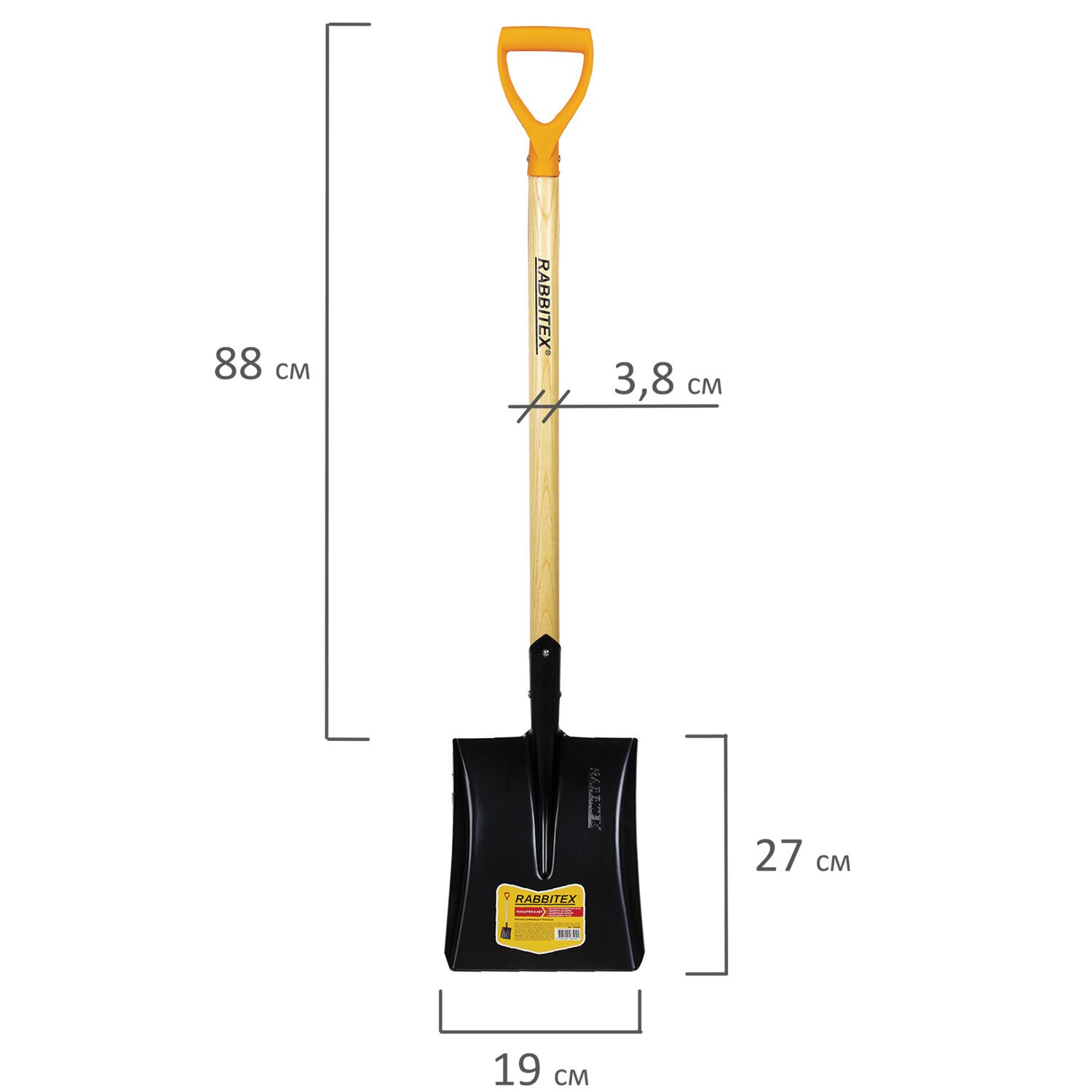Совковая стальная лопата RABBITEX STANDARD из закаленной легированной стали - Ваш надежный помощник в садовых и строительных работах. Высокое качество материалов, эргономичная ручка и универсальная длина помогут сделать Вам работу легче и продуктивнее.