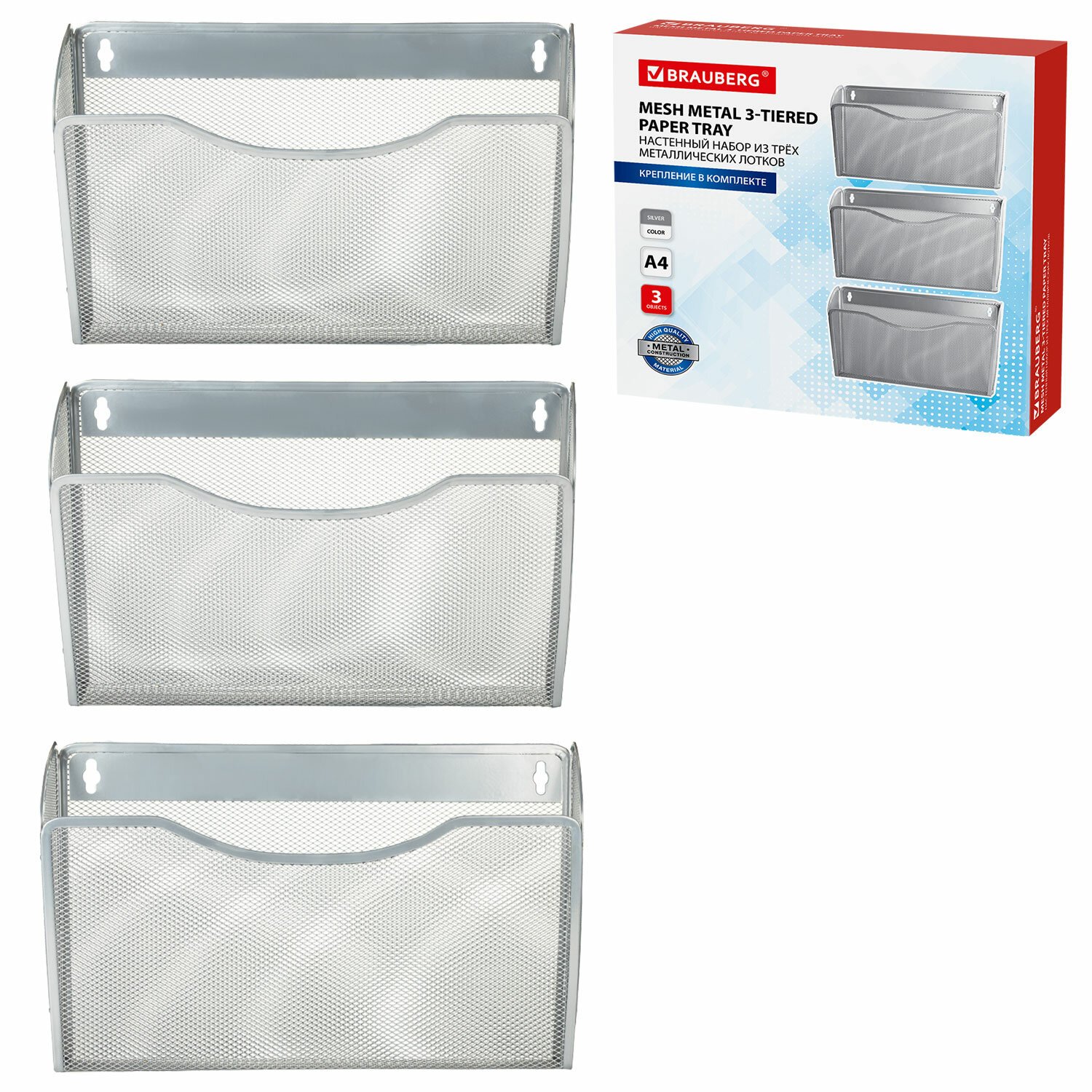 Настенный набор из 3 металлических лотков BRAUBERG "Germanium" предназначен для удобного хранения журналов, проспектов, каталогов и прочей бумажной продукции формата А4.