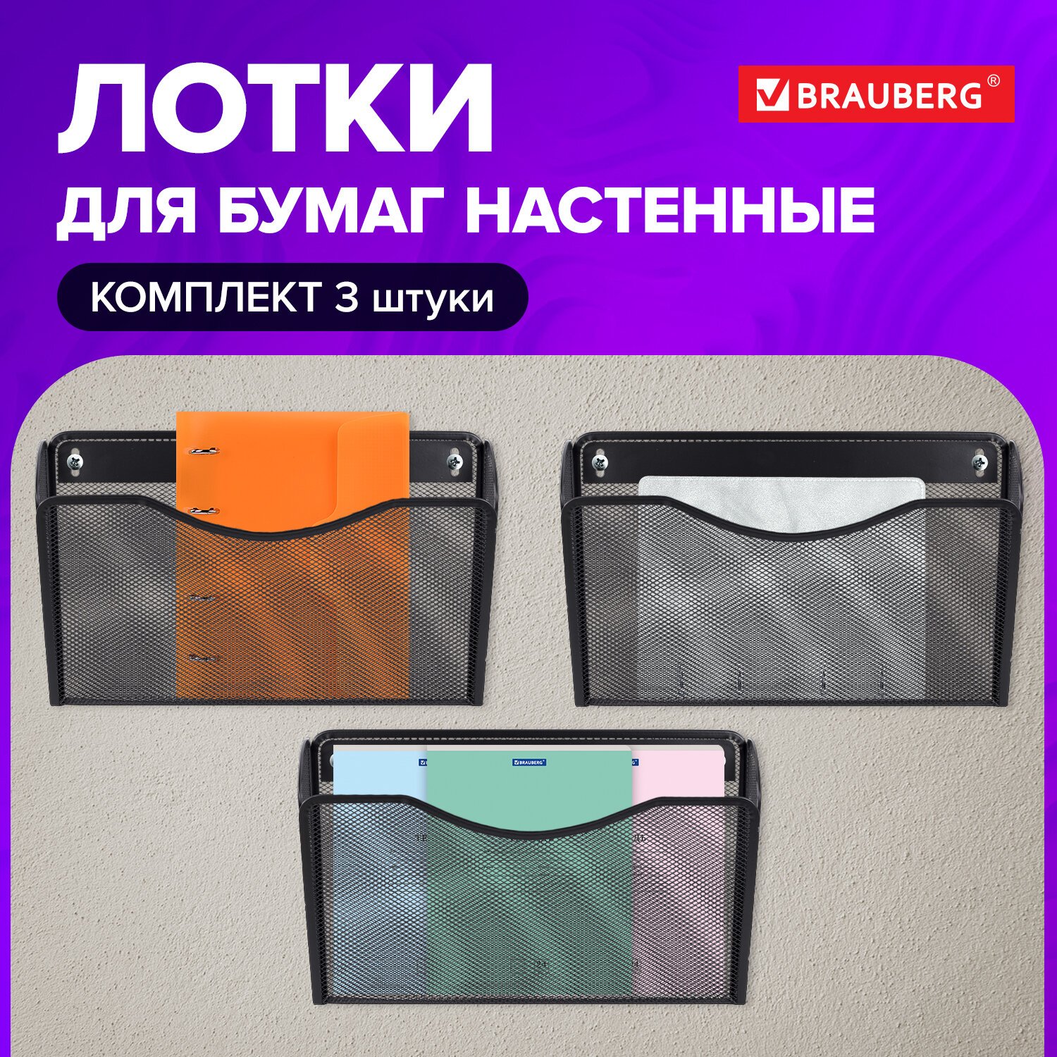Настенный набор из 3-х металлических лотков BRAUBERG "Germanium" предназначен для удобного хранения журналов, проспектов, каталогов и прочей бумажной продукции формата А4.