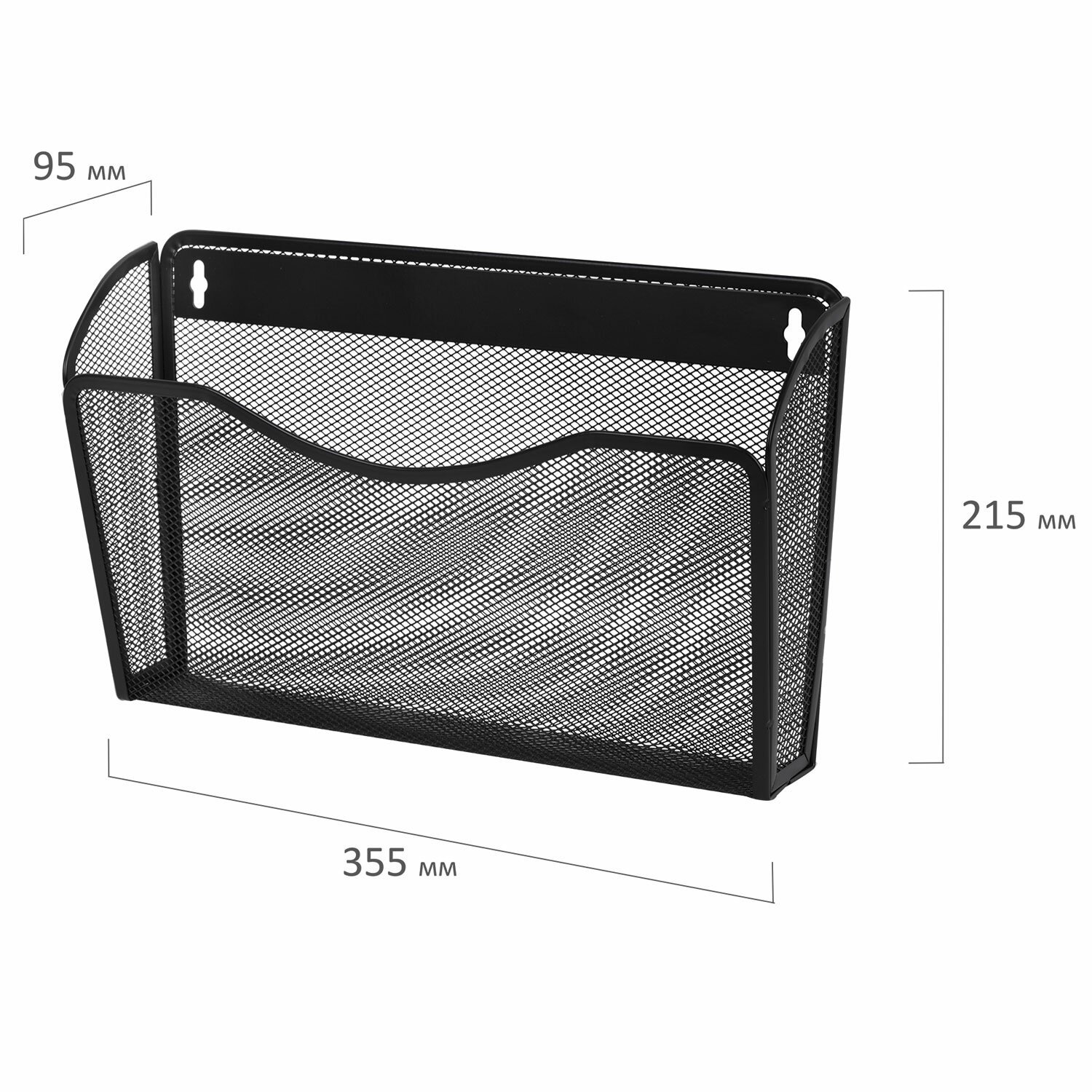 Изготовлен из высококачественной прочной металлической сетки. Лотки могут быть расположены в произвольном порядке. Возможна установка на стене или другой вертикальной поверхности. Удобная конструкция позволяет экономить рабочее пространство. Выполнен в классическом черном цвете. Крепеж входит в комплект. Набор поставляется в индивидуальной упаковке. Размер каждого лотка (ВхШхГ) - 215х355х95 мм.