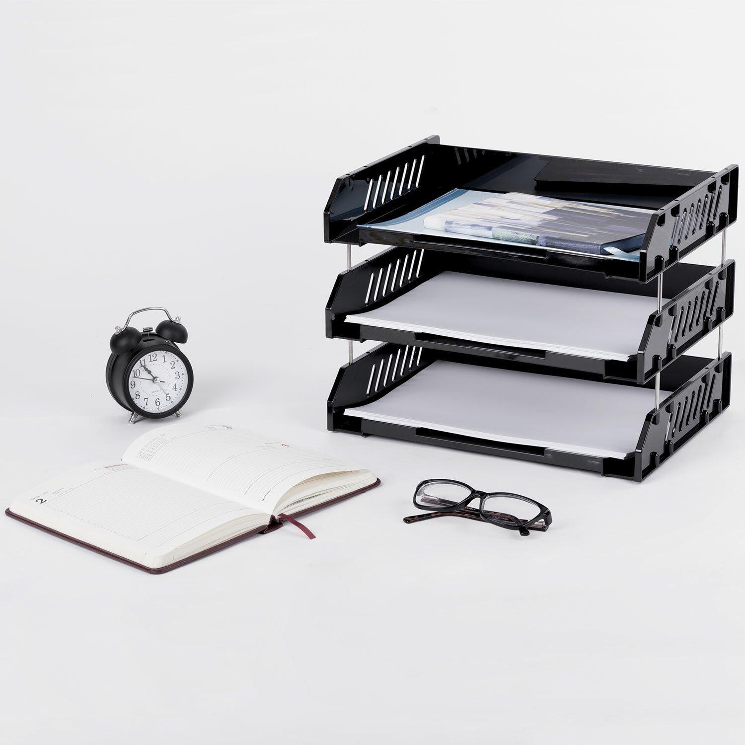 Лотки горизонтальные для бумаг, КОМПЛЕКТ 3 шт., 340х270х70 мм, черный, BRAUBERG "Office", 237255