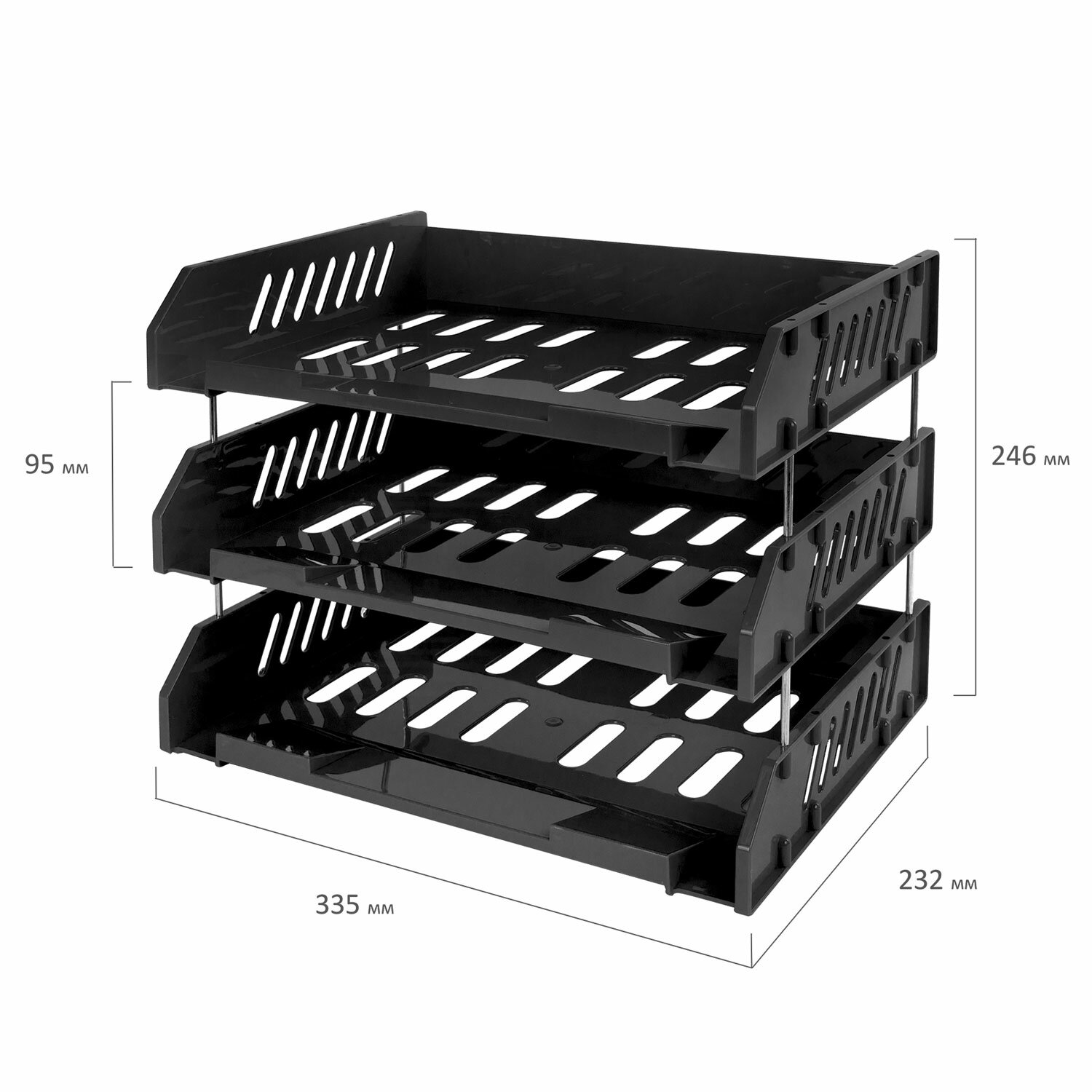 Лотки горизонтальные для бумаг, КОМПЛЕКТ 3 шт., 335х232х246 мм, черный, BRAUBERG EXPERT, 238107