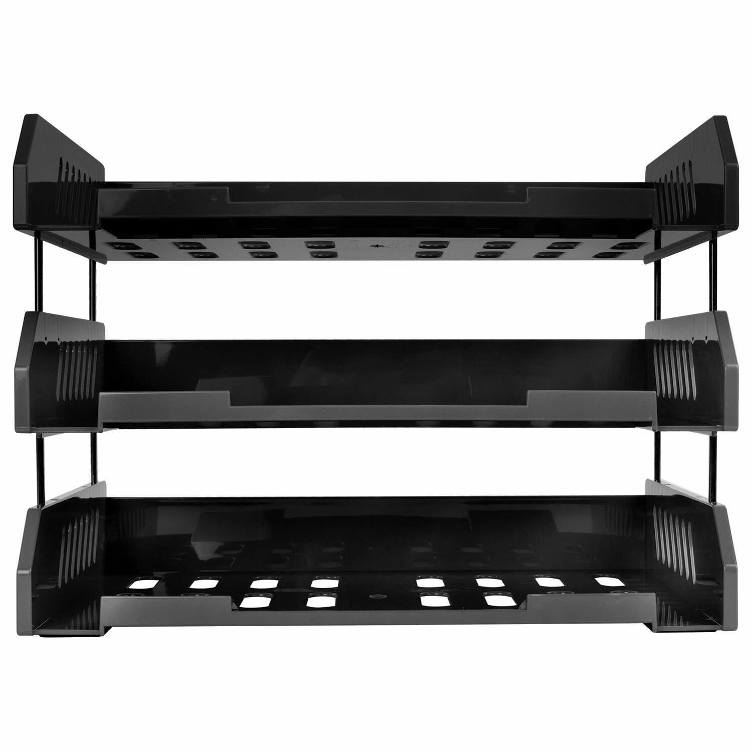 Лотки горизонтальные для бумаг, НАБОР 3 шт. (340х260х240 мм), на металлических стержнях, черные, "Strong", ЛТГ-63795