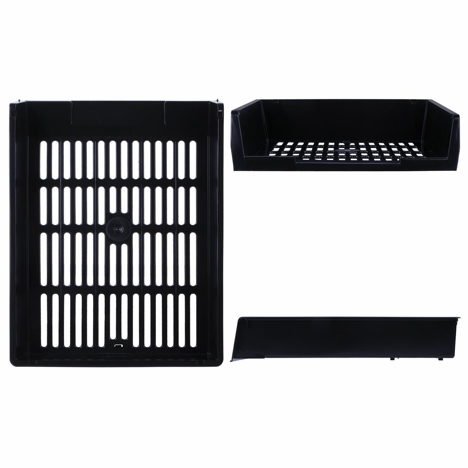 Изготовлены из прочного полистирола. Размер каждого (ГхШхВ) - 340х270х70 мм. Комплект из 3 лотков обладает устойчивой конструкцией, благодаря которой удобен для хранения объемных документов и папок. Выполнен в черном цвете.